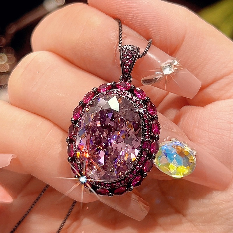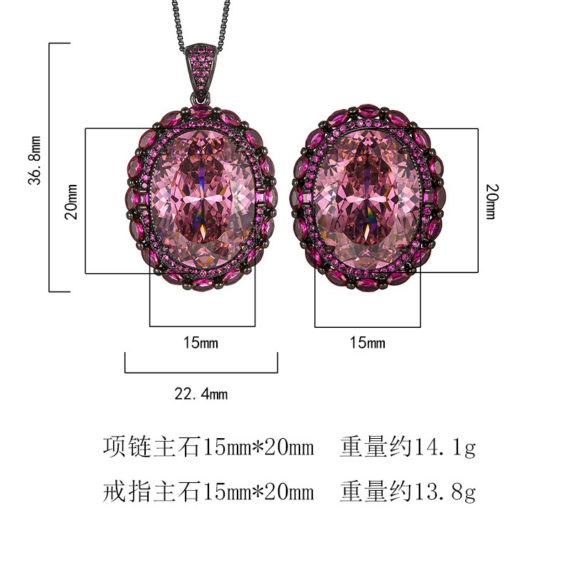新款铜镀枪黑色仿彩宝吊坠女款项链干枯玫瑰粉色镶钻戒指开口指环
