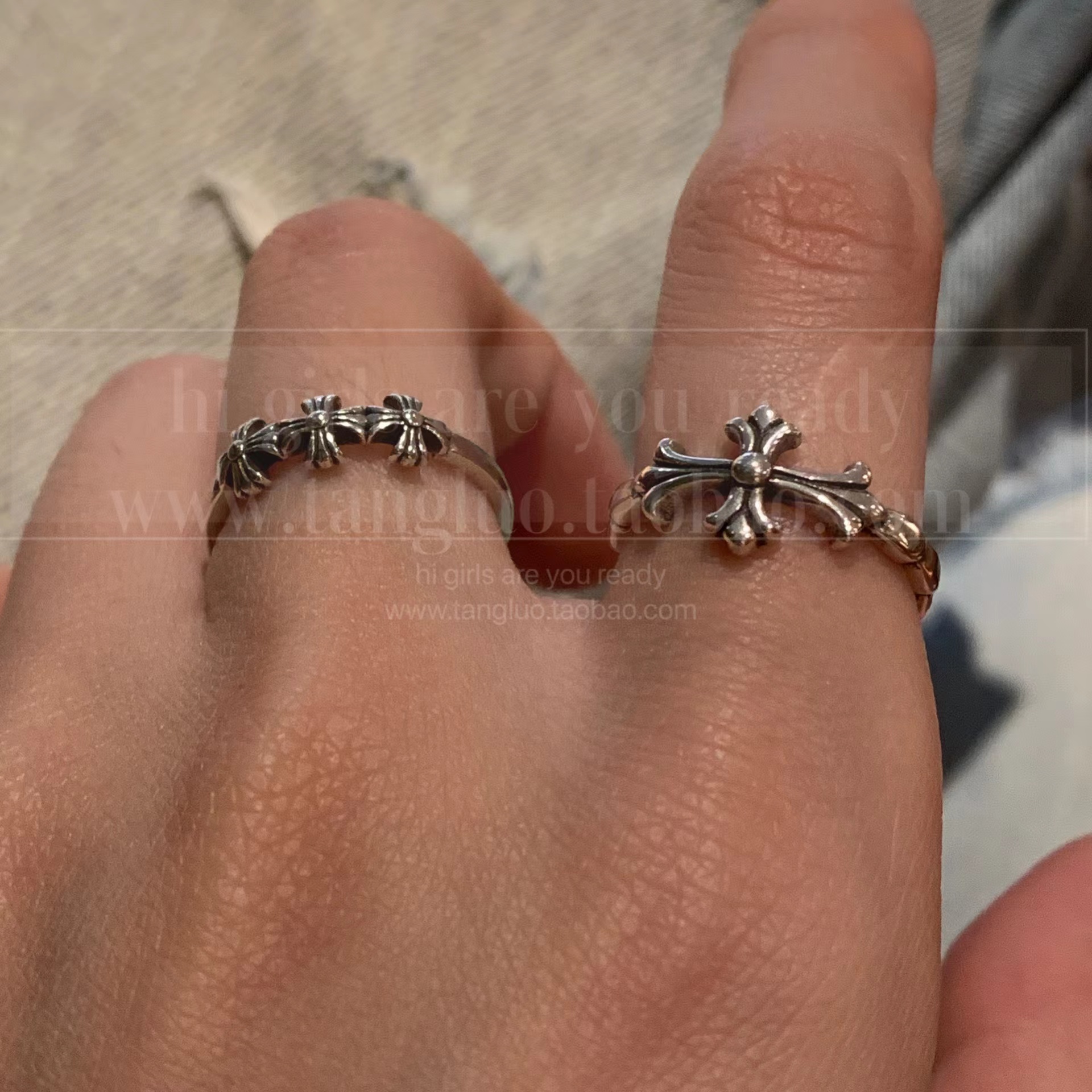 美式复古十字架戒指叠戴女小众做旧冷淡风指环个性独特戒圈辣妹潮