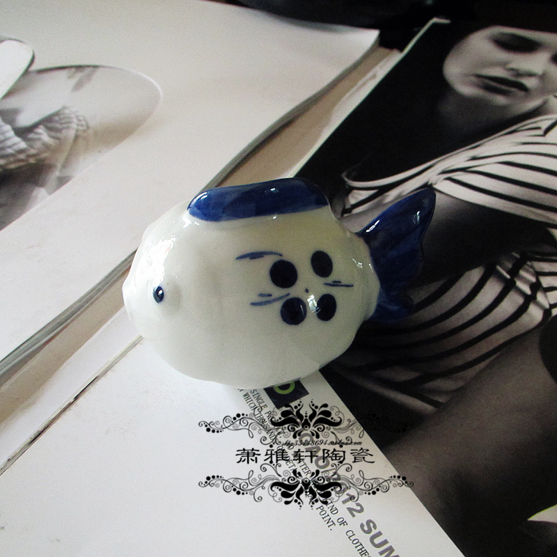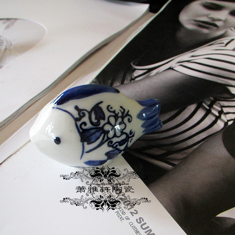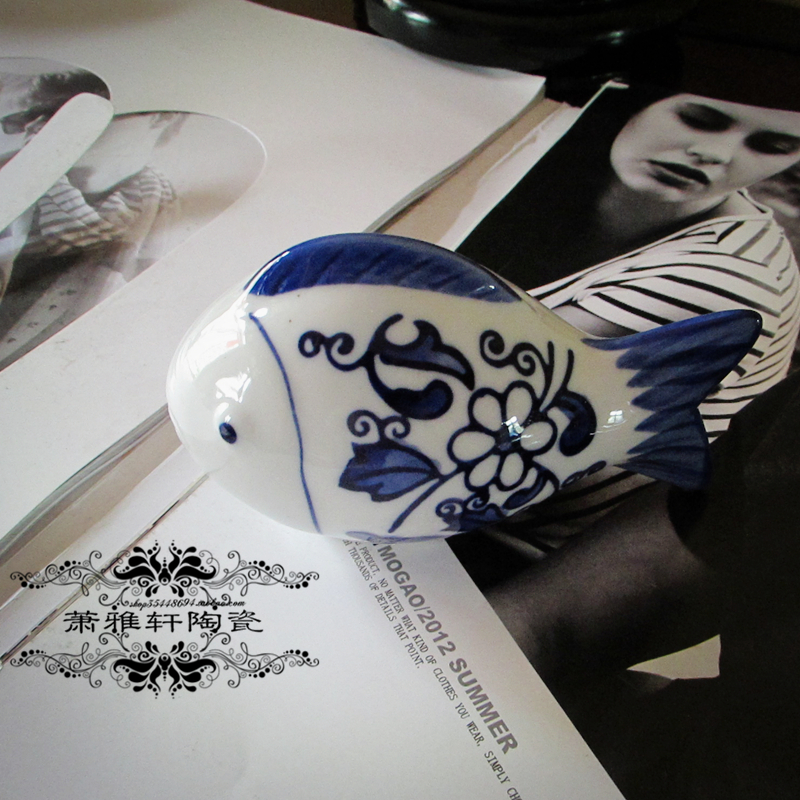 新中式手绘青花水中鱼漂浮陶瓷鱼游过来靠近你家居饰品摆件鱼缸饰