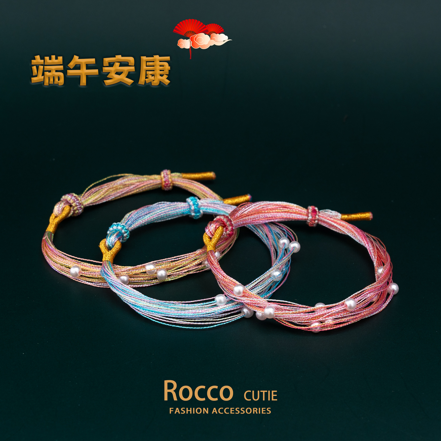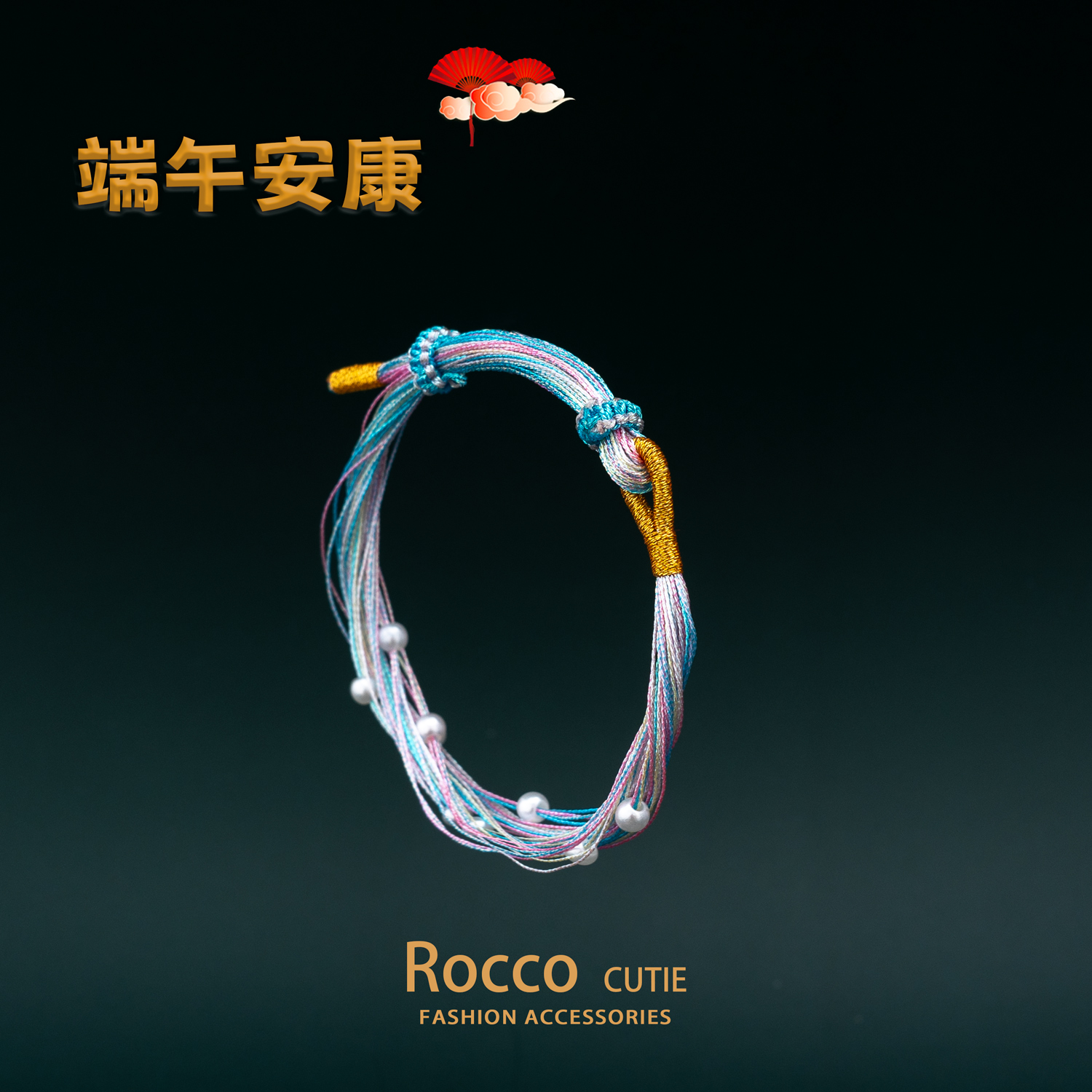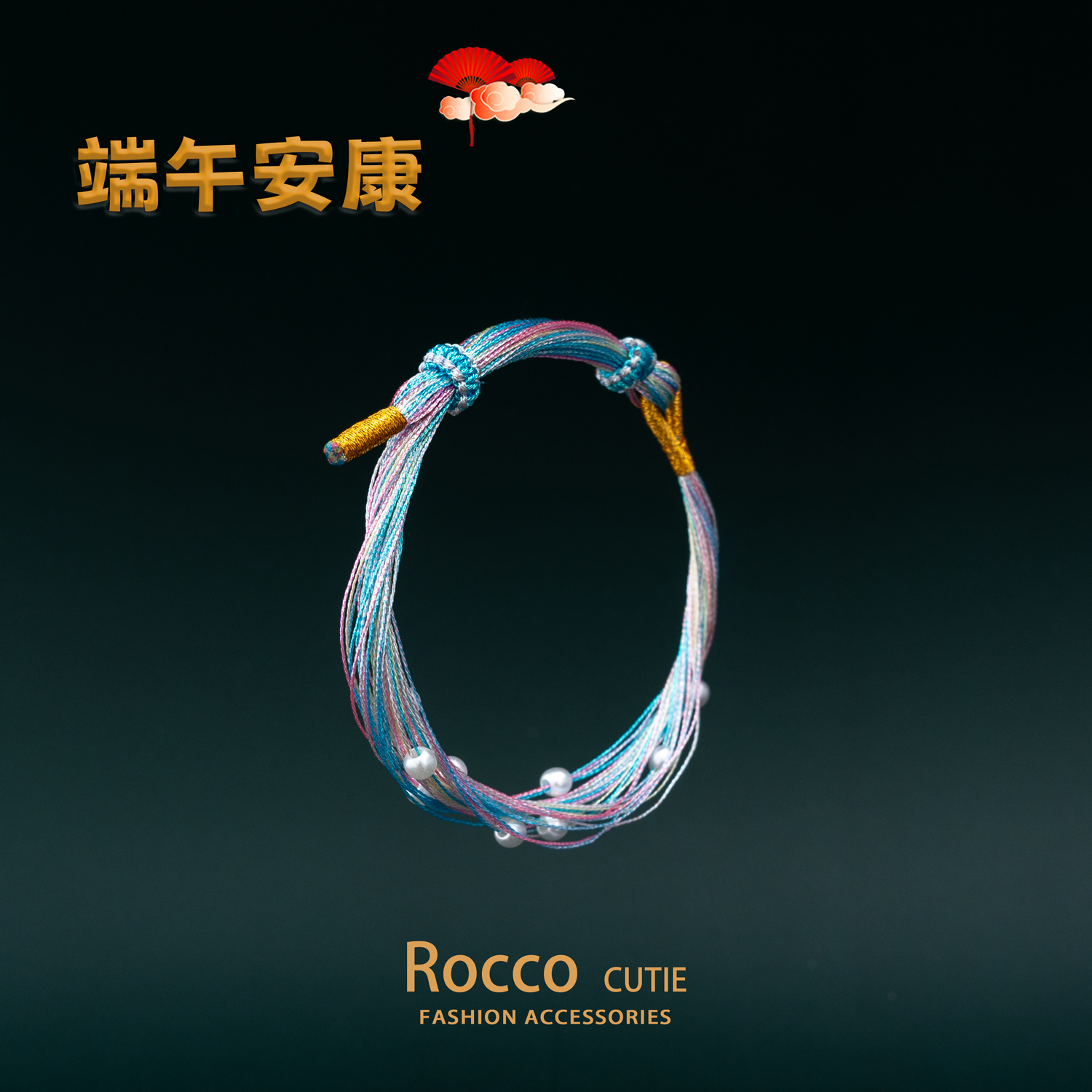 满天星彩蓝色端午节新款五彩绳手链儿童成人五彩线编织手绳女甜美