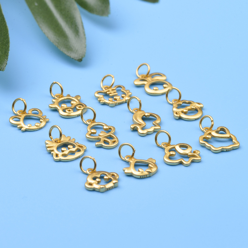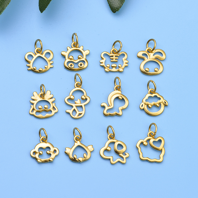 925纯银镀金鼠牛虎兔龙蛇马羊猴鸡狗猪十二生肖属相吊坠 diy配件