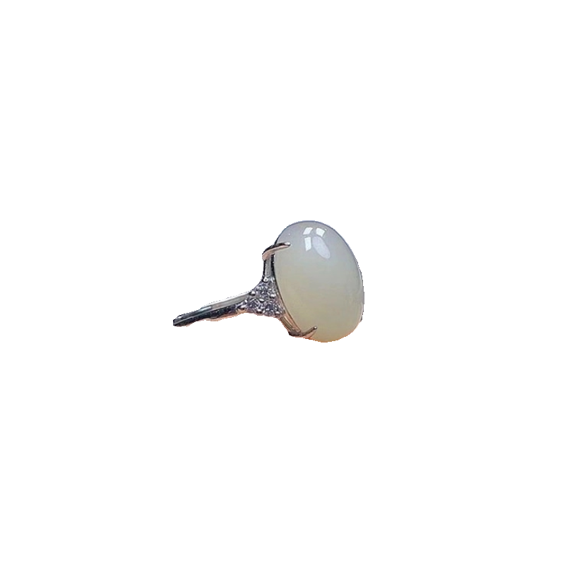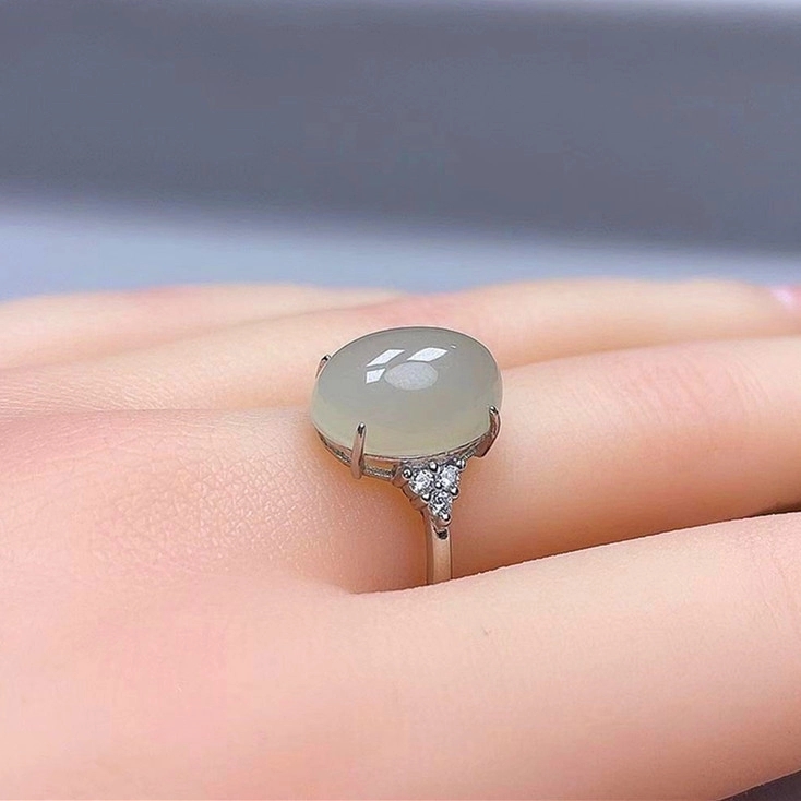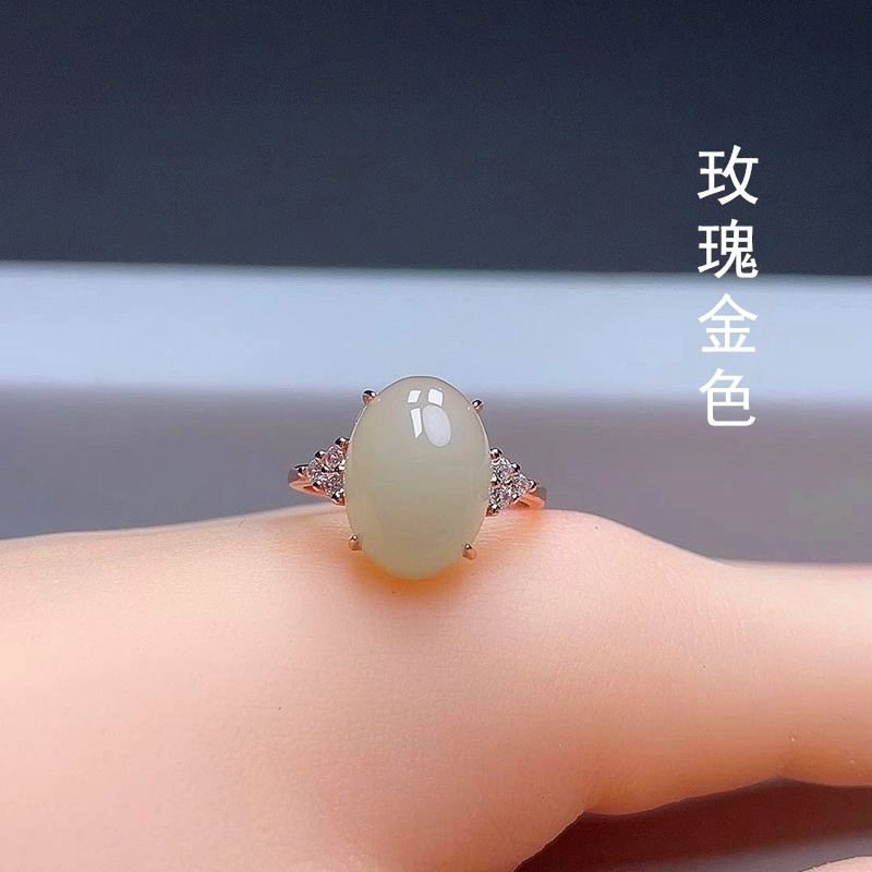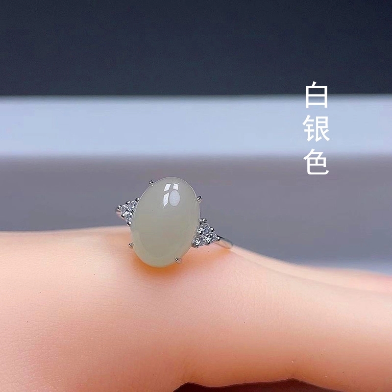 和田玉戒指925银镶嵌和田玉戒指 满天星款时尚女士玉戒指10*14