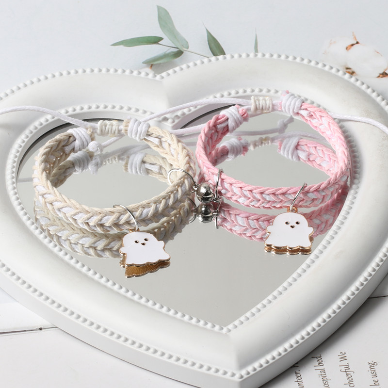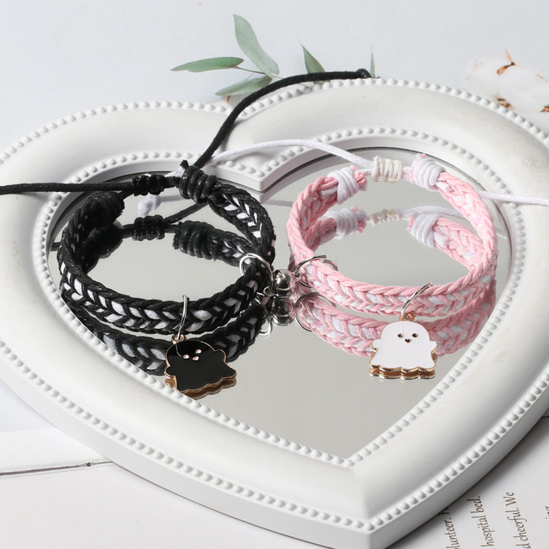 原创幽灵可调节双拉编织情侣磁吸手链新款卡通闺蜜手绳手串高颜值
