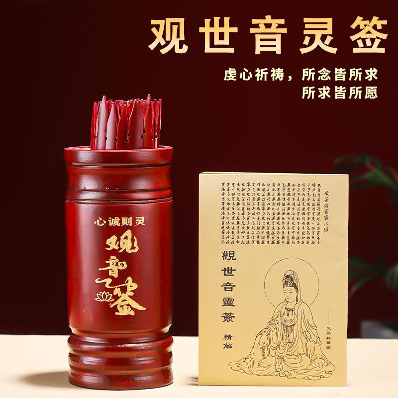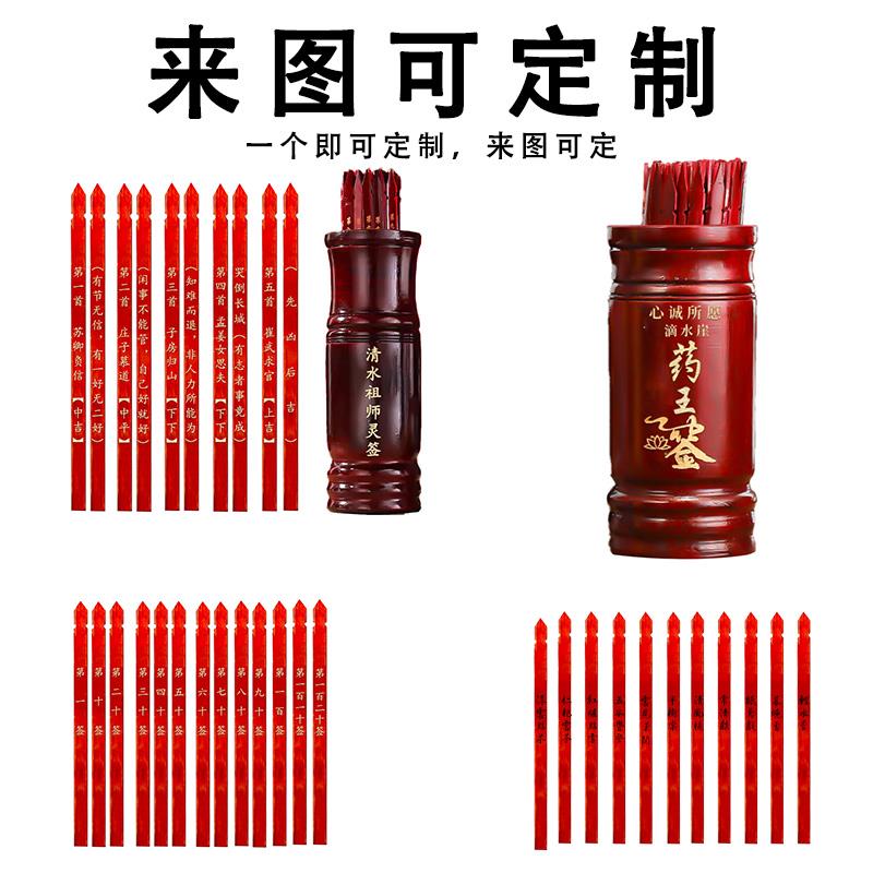 可定制求签筒抽签筒摇签筒观音灵签100签筒送解签书详解竹签筒子