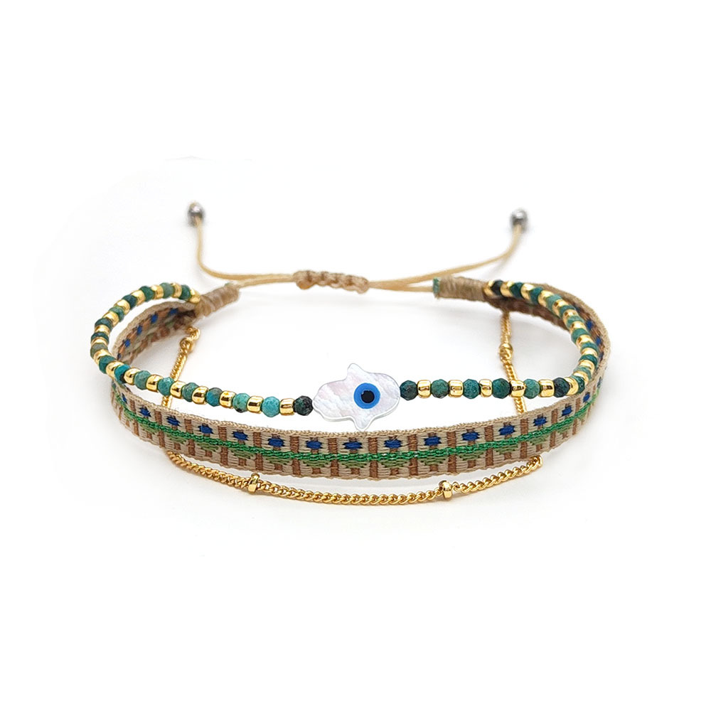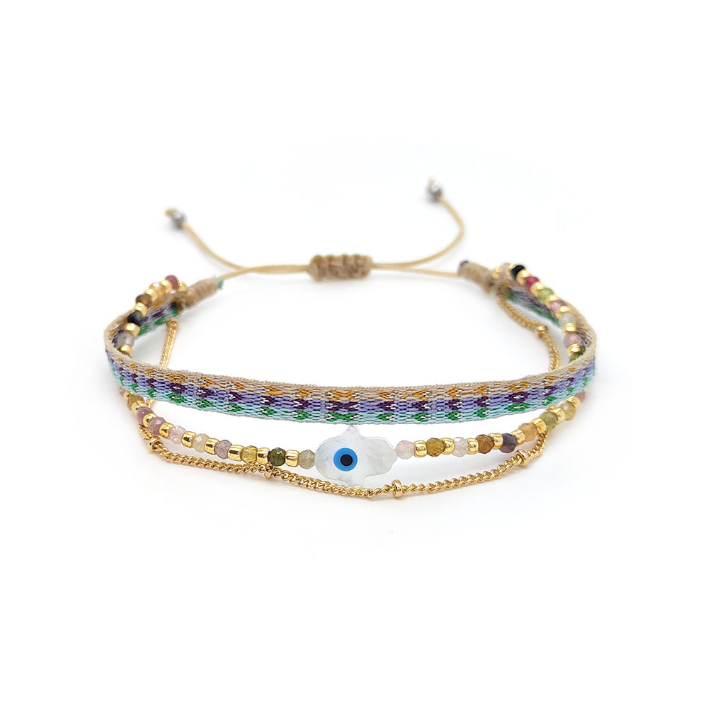 天然碧玺编织串珠幸运恶魔之眼手链女欧美哥伦比亚风织带叠戴手绳