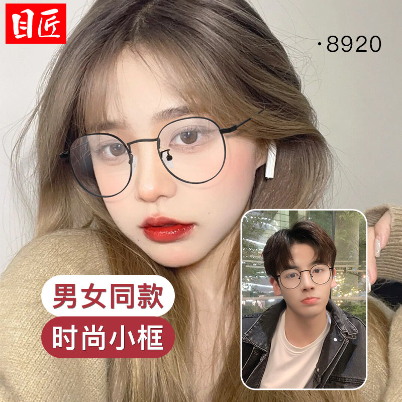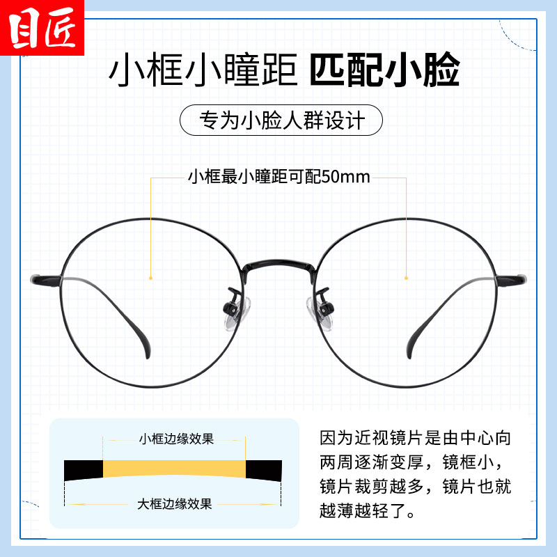 小脸小框近视眼镜框女防蓝光辐射可配度数素颜配复古黑色圆框眼睛