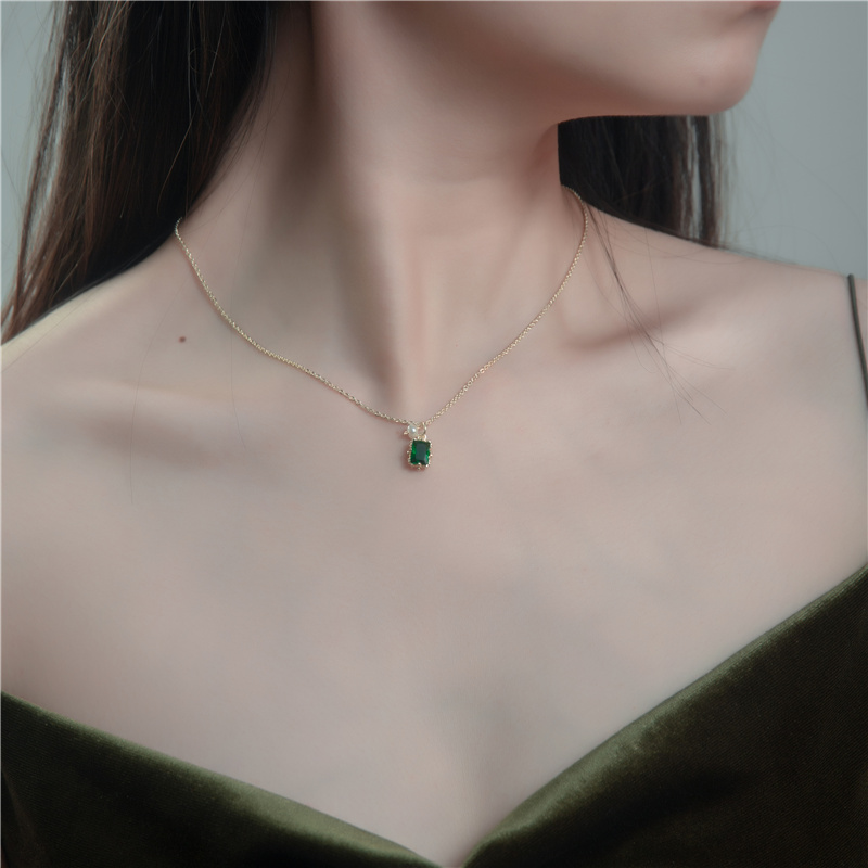十里间【新箩令】祖母绿锆石珍珠项链气质显白可调节锁骨链戒指