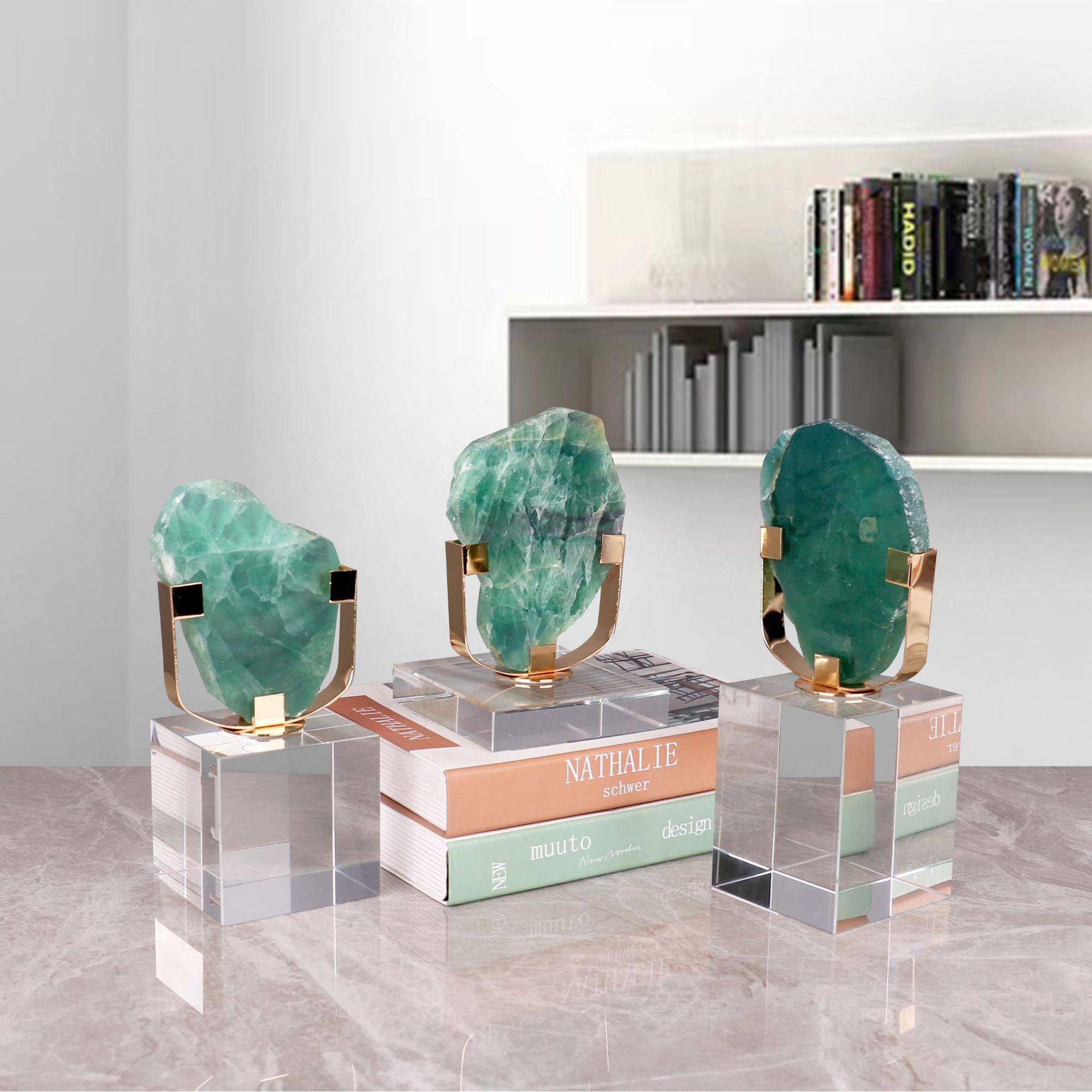 现代北欧天然水晶石绿萤石软装工艺品客厅玄关家居桌面装饰品