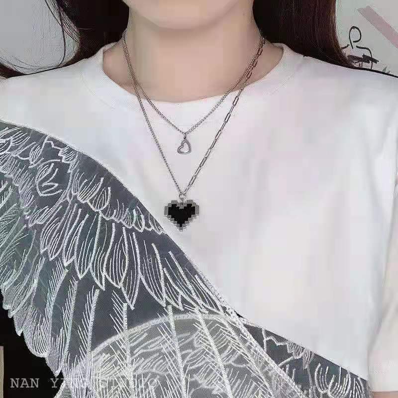 黑色双层叠戴马赛克爱心项链新款潮简约冷淡风锁骨链ins嘻哈配饰