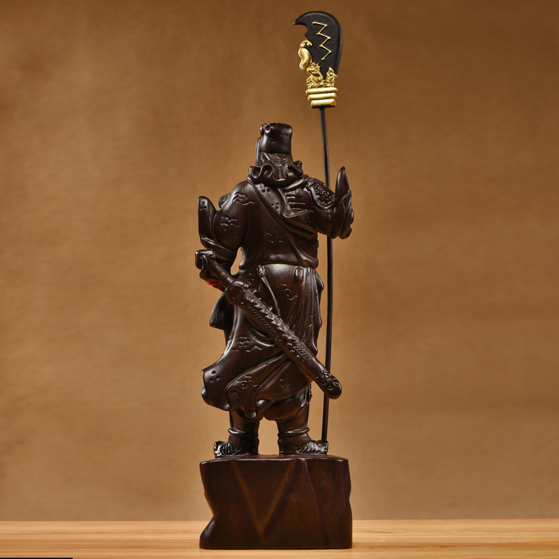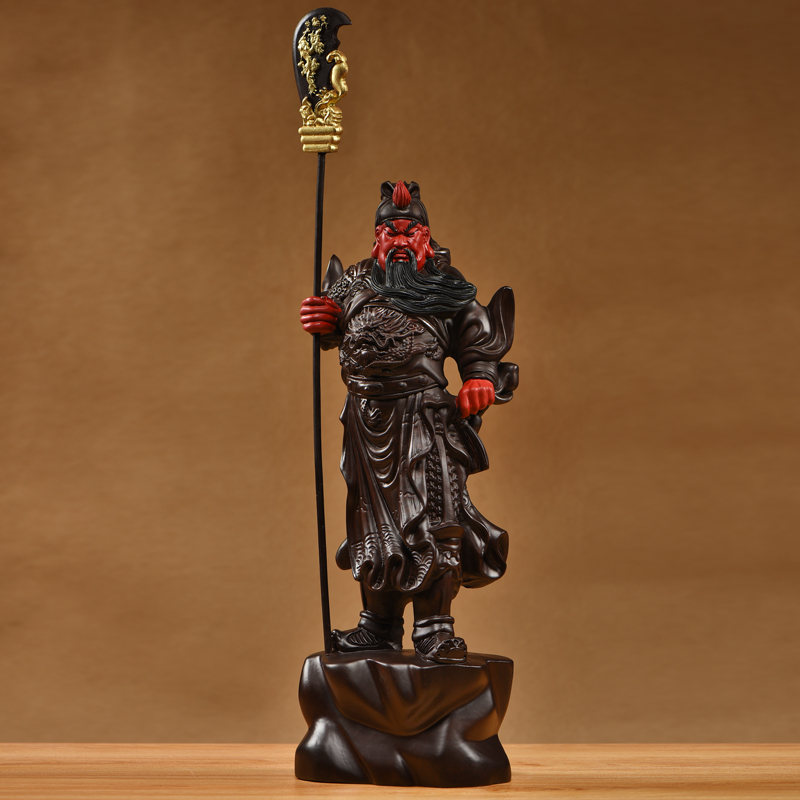 黑檀木雕武财神关公佛像摆件实木彩绘关羽家居客厅公司装饰工艺品