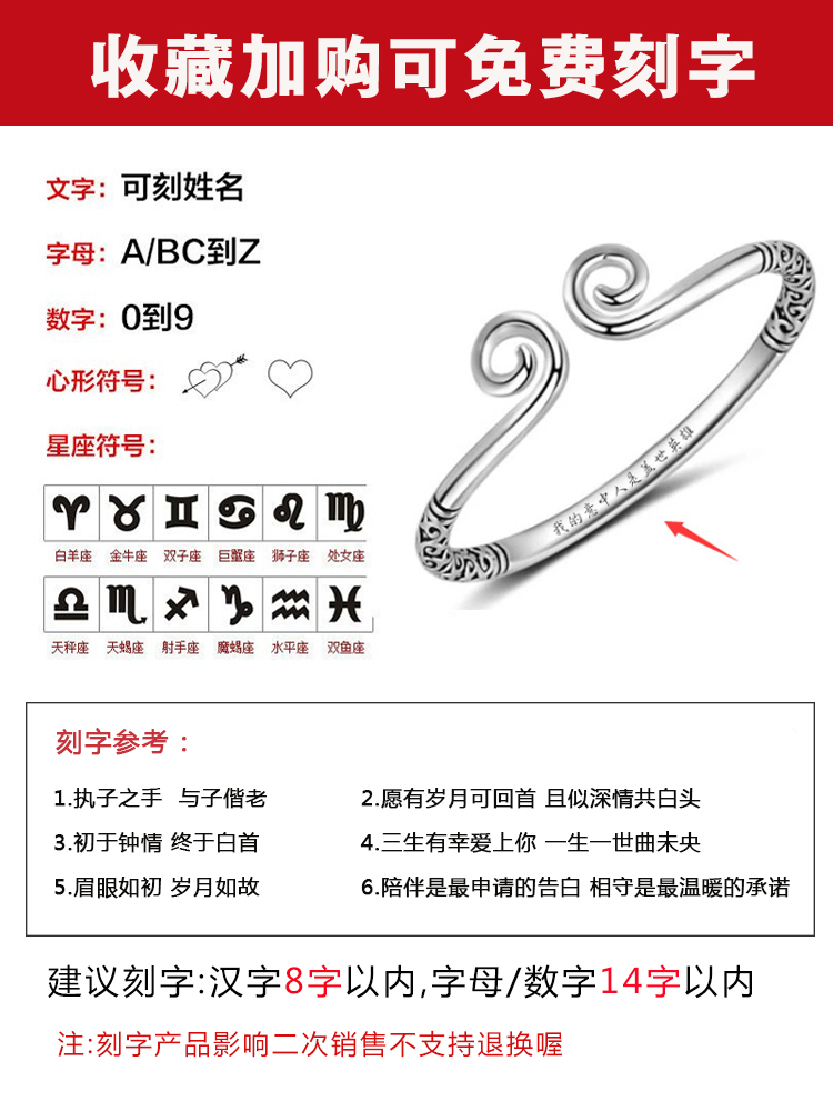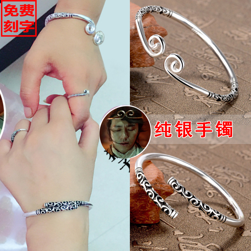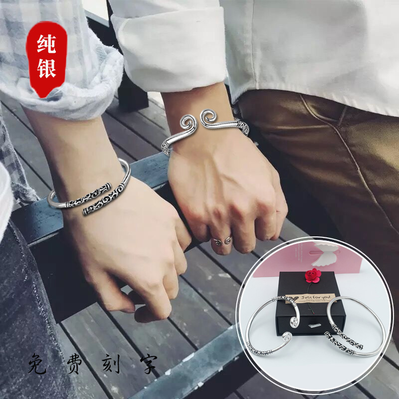 纯银情侣手链一对男女刻字金箍棒韩版潮情侣简约至尊宝紧箍咒手镯