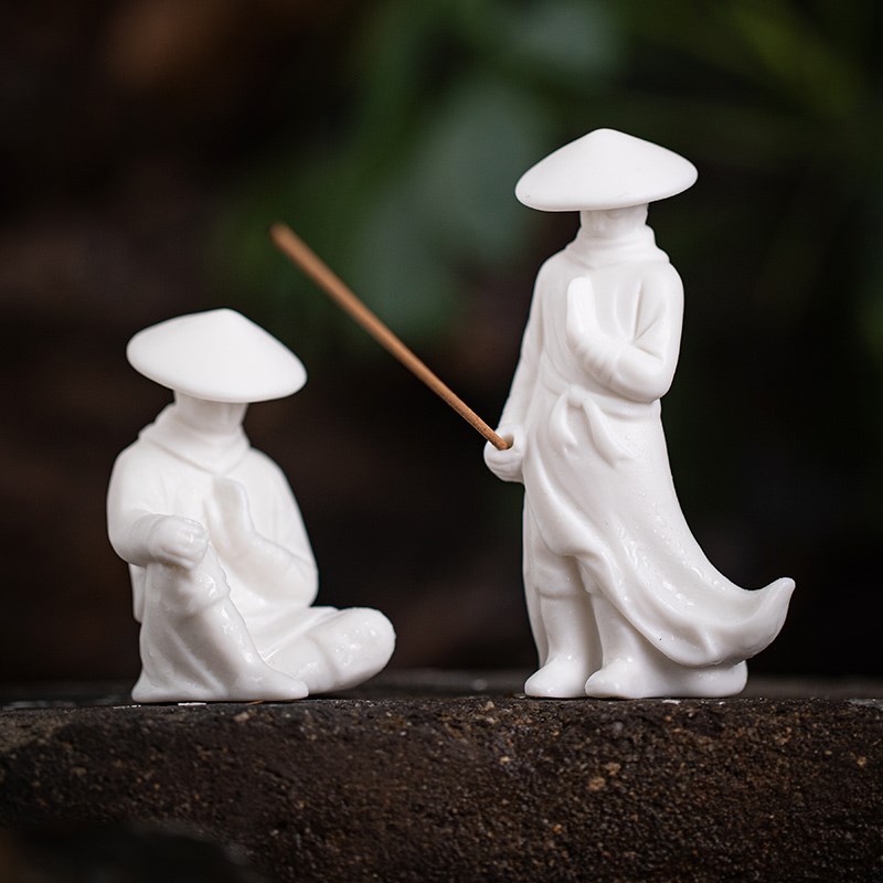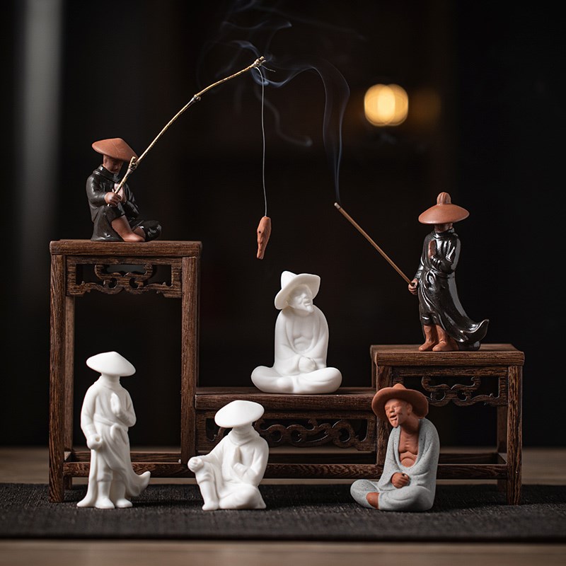禅意陶瓷江湖故i人侠客钓鱼人物线香香道小摆件鱼缸微景观造景装