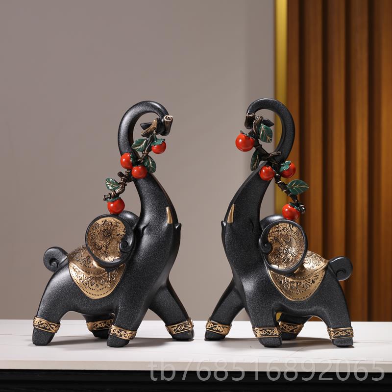 高档居创奢意财富大象摆件一家对客轻厅电视柜酒柜高档玄关招财装
