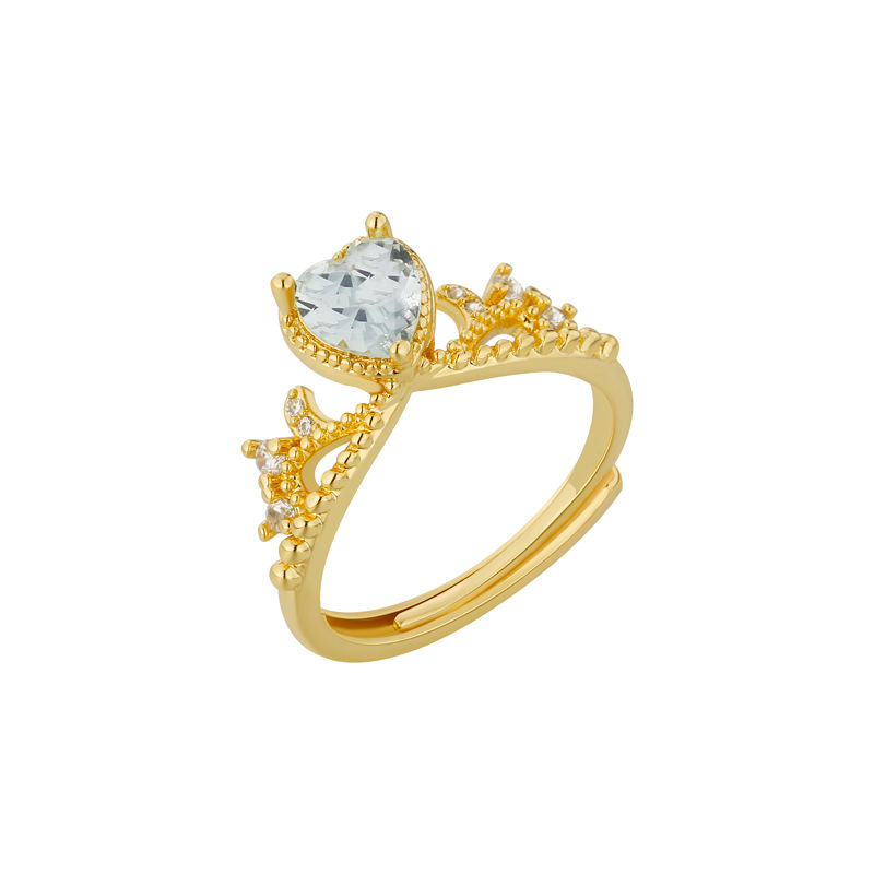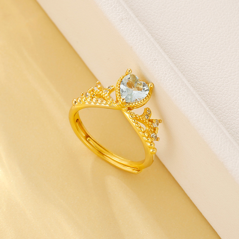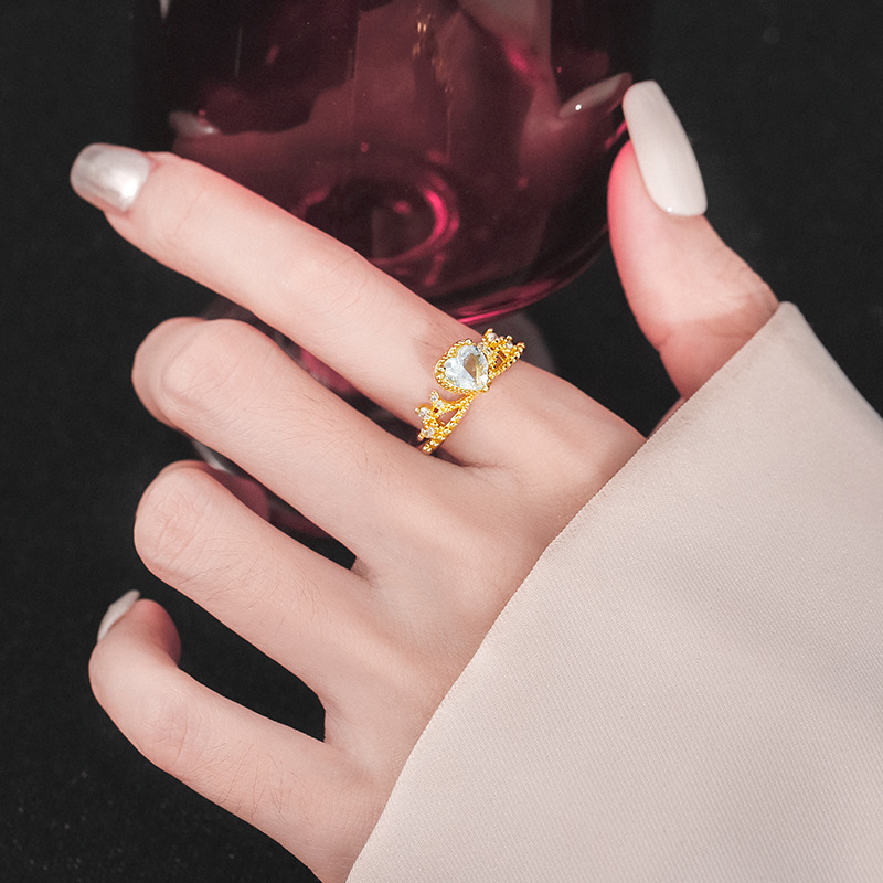 新款皇冠戒指爱心蝴蝶结交织锆石黄色精致小众轻奢国风指环