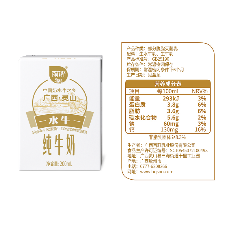 百菲酪灵山限定3.8g水牛纯牛奶200ml*10盒*3箱水牛奶早餐奶学生奶