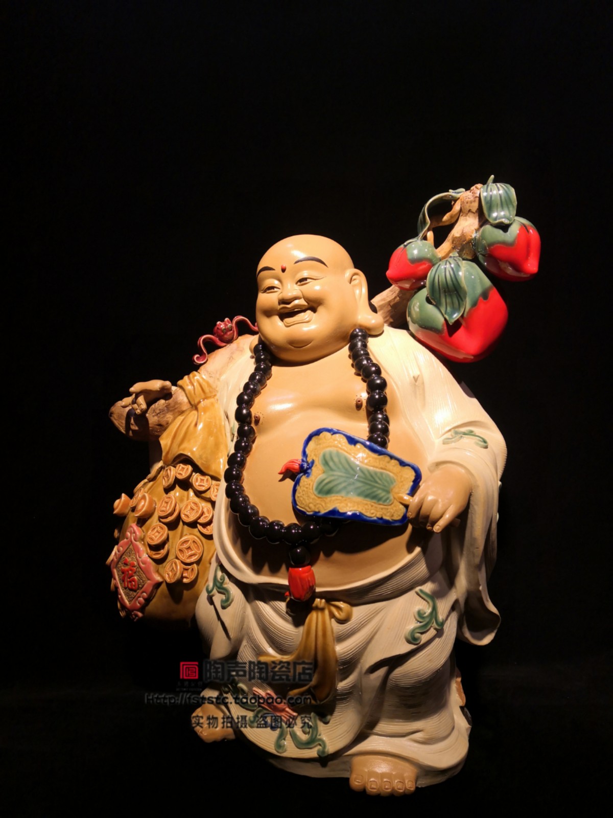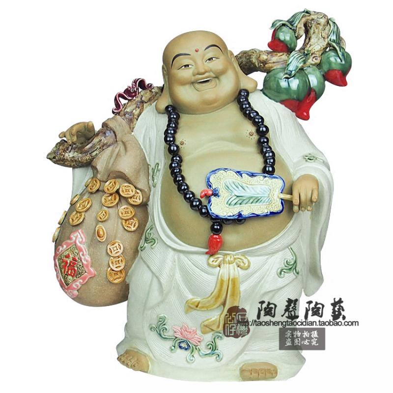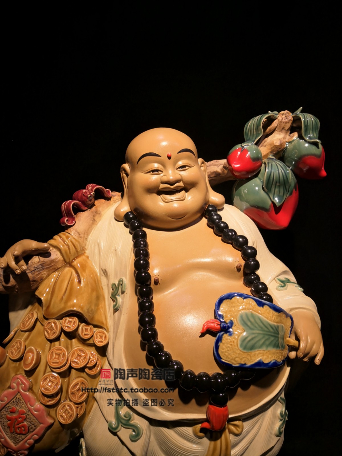 推荐春风得意弥勒笑佛如意布袋寿桃石湾陶瓷公仔家居玄关吉祥摆件