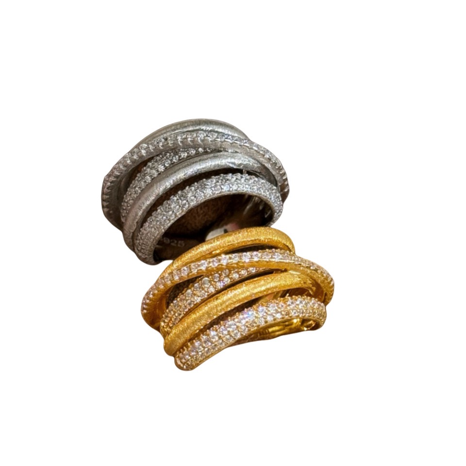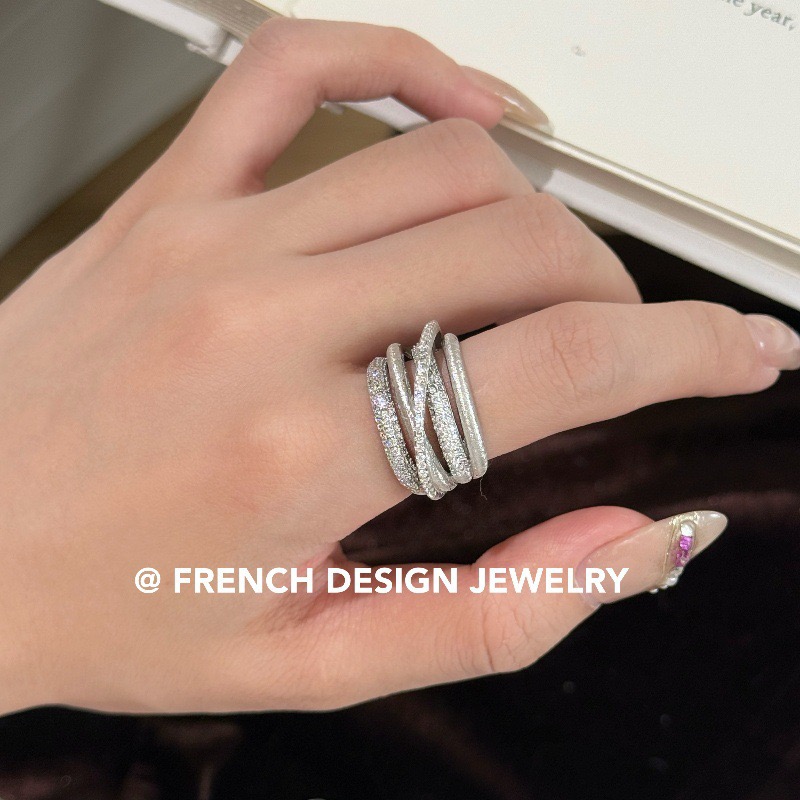 超美法式轻奢重工S925纯银拉丝多层镶钻戒指高级感设计款
