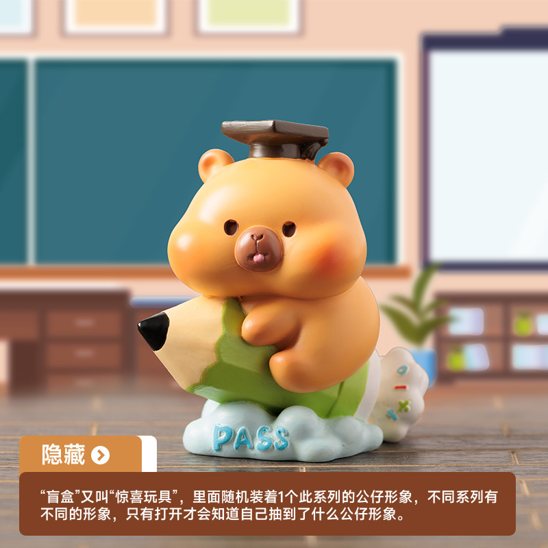 前程似锦豚盲盒摆件卡皮巴拉公仔手办桌面装饰品学生礼物装饰摆件