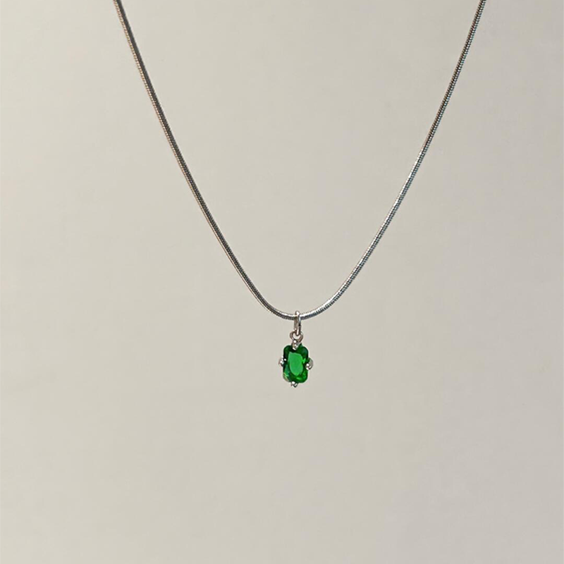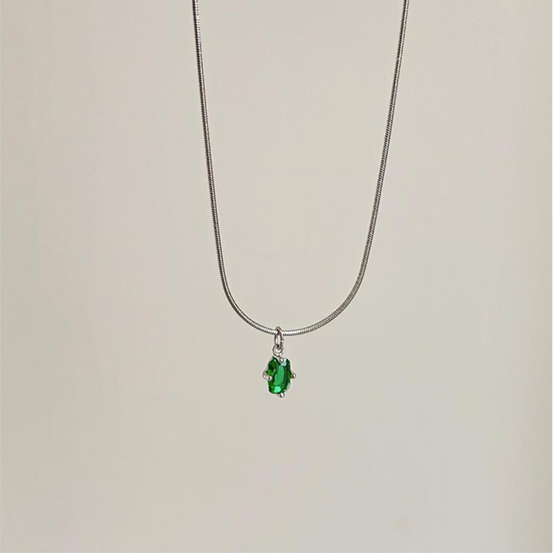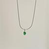 S925纯银清冷感绿色小方糖蛇骨项链复古森系简约冷淡风气质锁骨链
