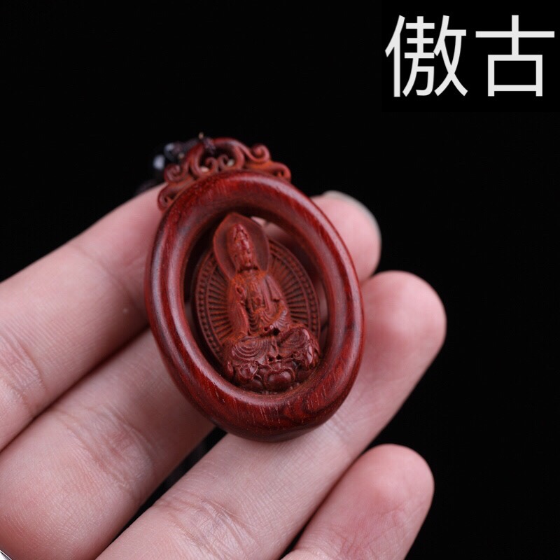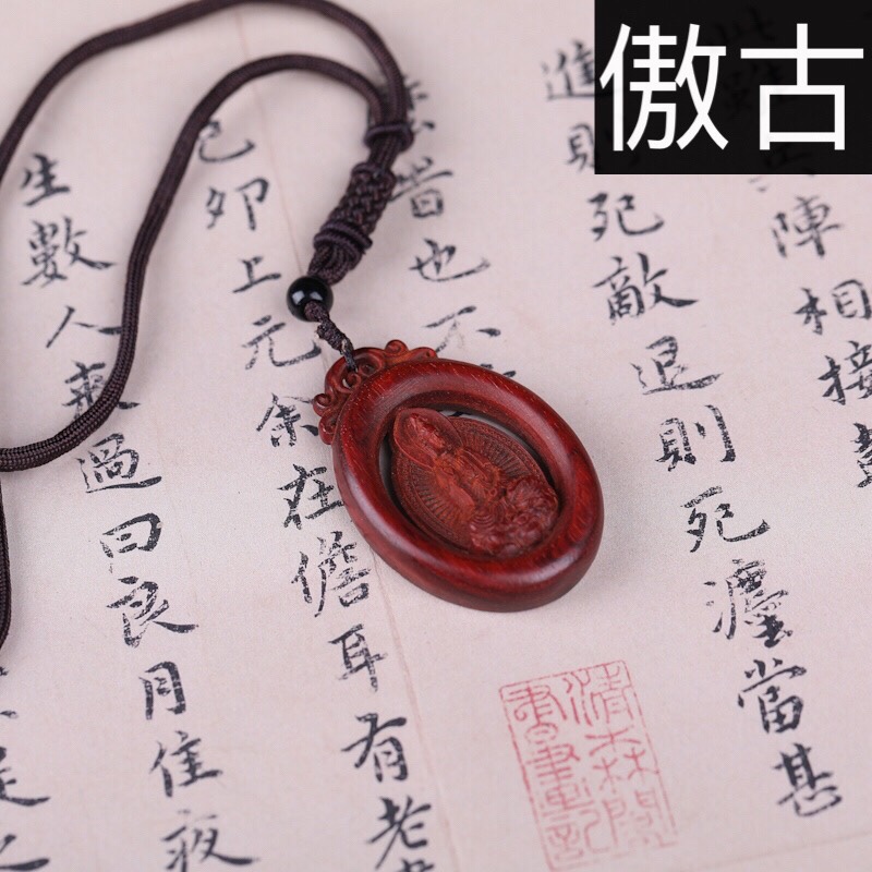 小叶紫檀镂空观音吊坠挂件男项链菩萨毛衣链老料红木创意饰品