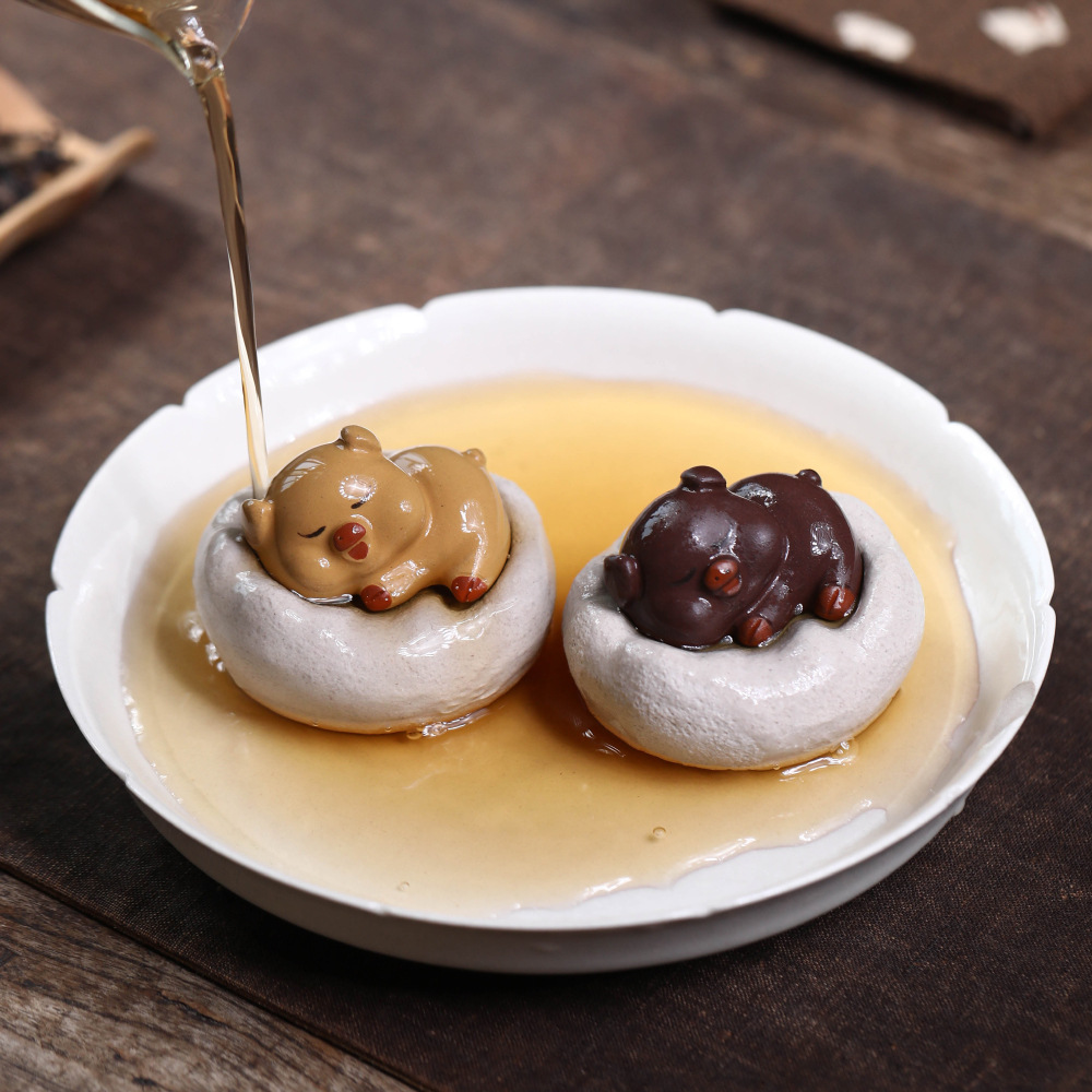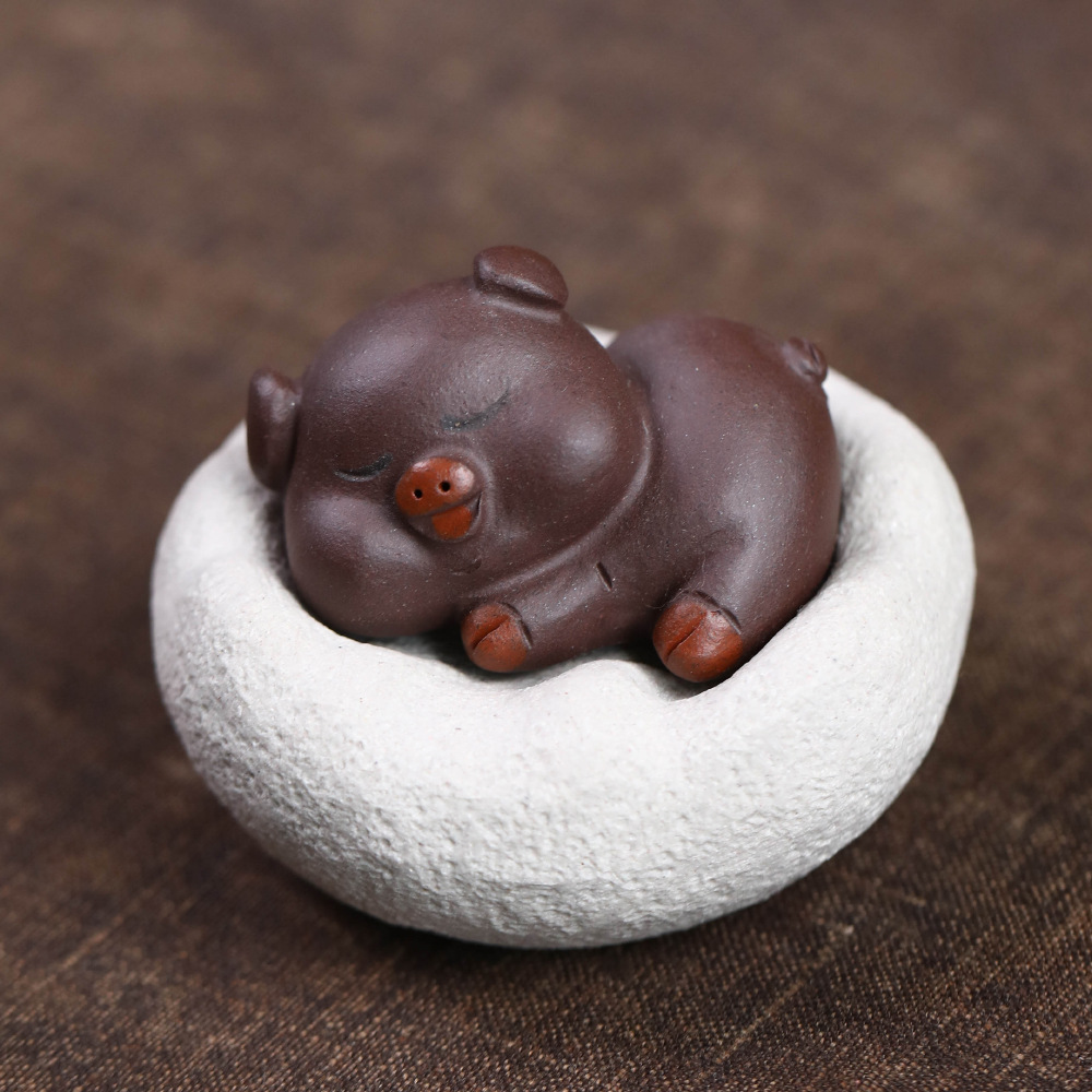宜兴紫砂茶宠十二生肖猪陶瓷小摆件猪创意茶玩手工茶配件可爱