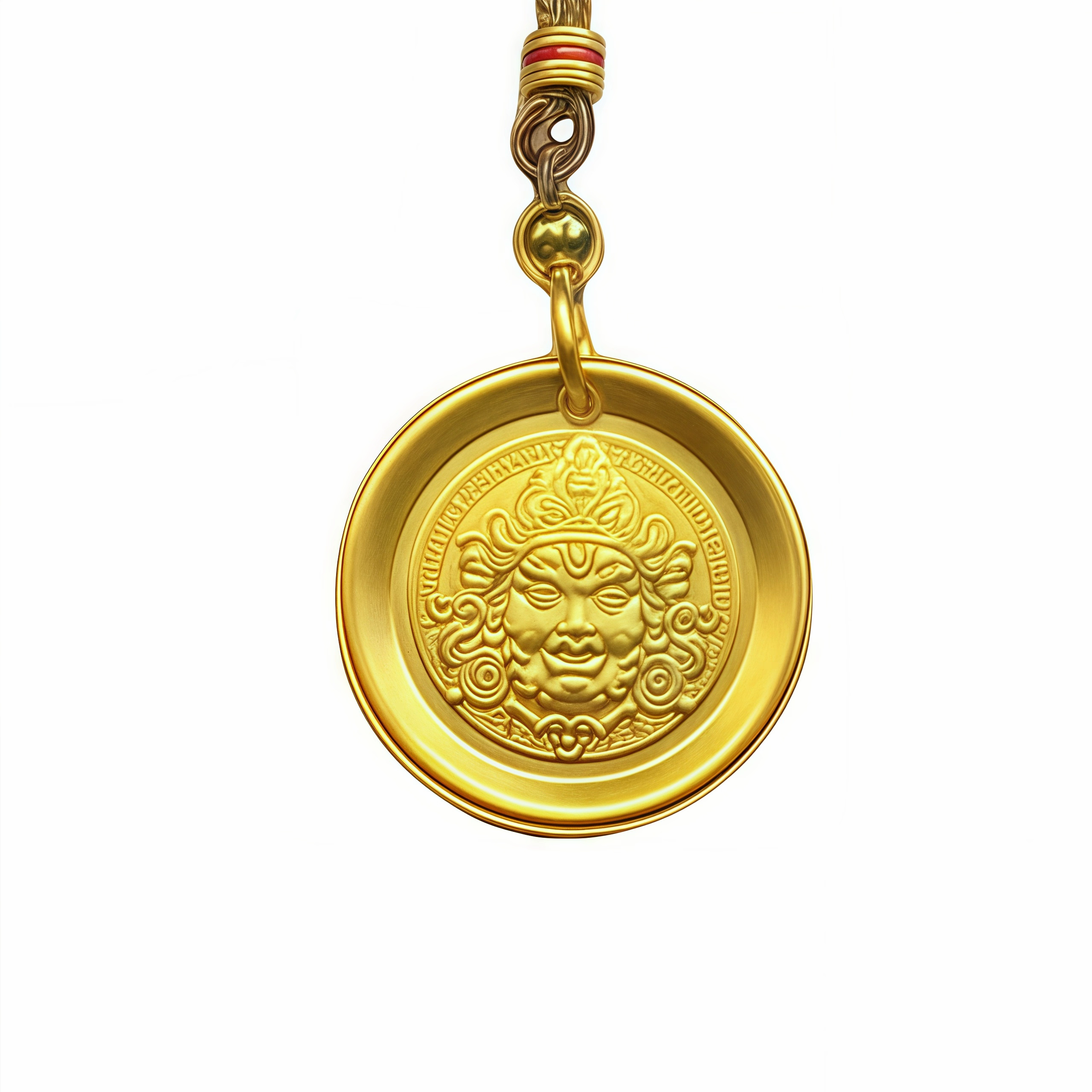 古法黄金包银项链吉言黄财神吊坠男锁骨链毛衣链情侣款礼物送女友