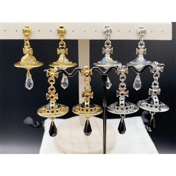 时尚个性 闪闪施华大钻黑色水晶土星水滴耳环链条项链