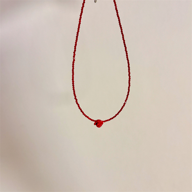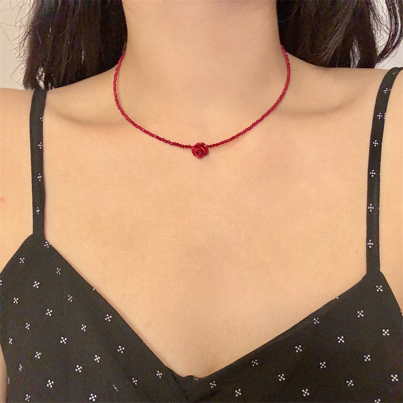 韩国东大门小玫瑰花朵串珠项链少女感时尚个性甜美颈链锁骨链潮