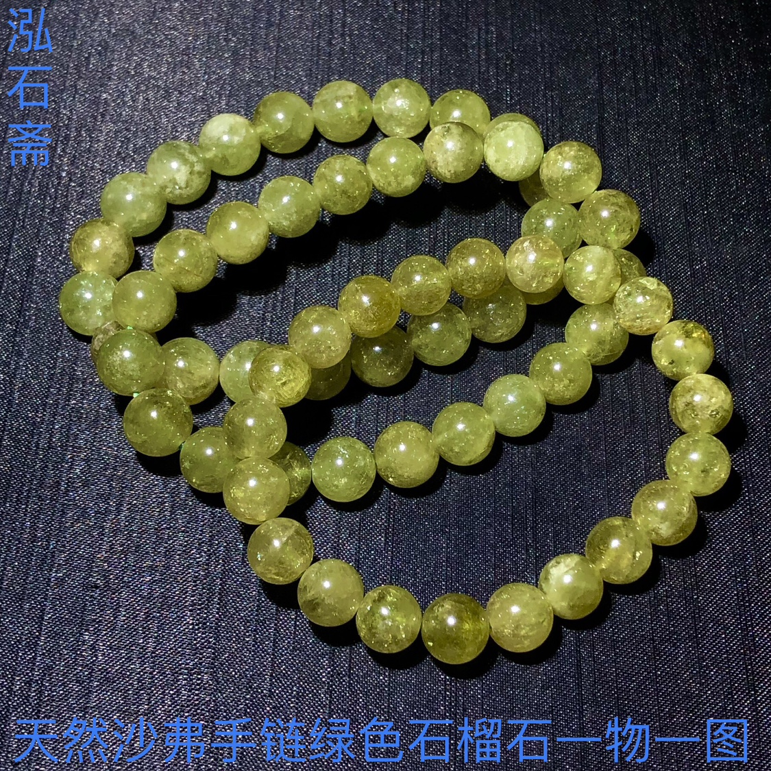 2A89 天然绿色石榴石手链莎弗莱圆珠单圈绿柱石绿色水晶一物一图