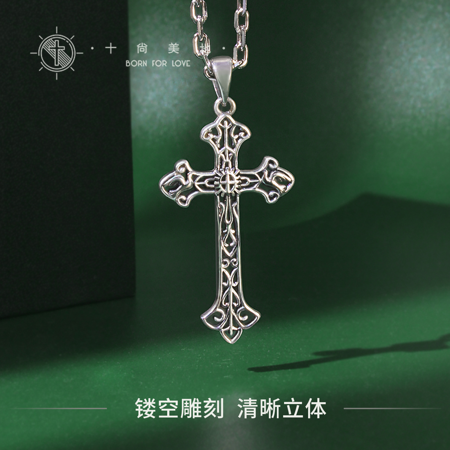 十尚美地和平 复古925纯银十字架项链男潮款吊坠做旧泰银罗马挂件