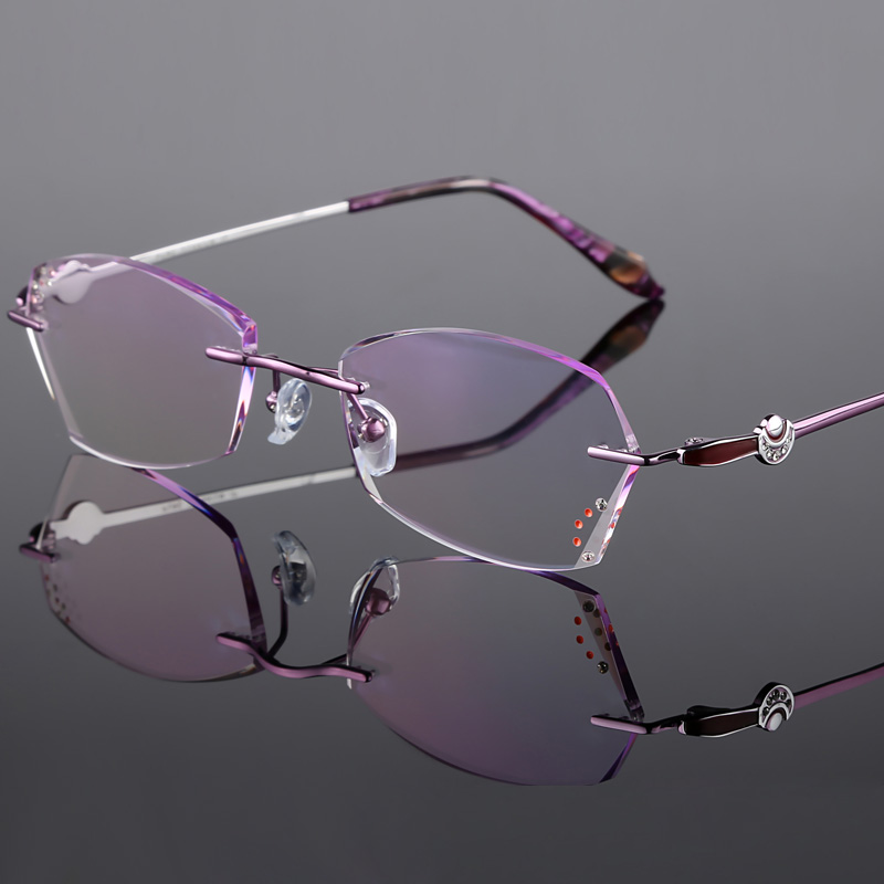 配眼镜镶钻石切边近视眼镜框成品女款无框眼镜女 近视 纯钛 超轻