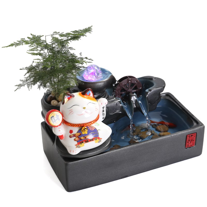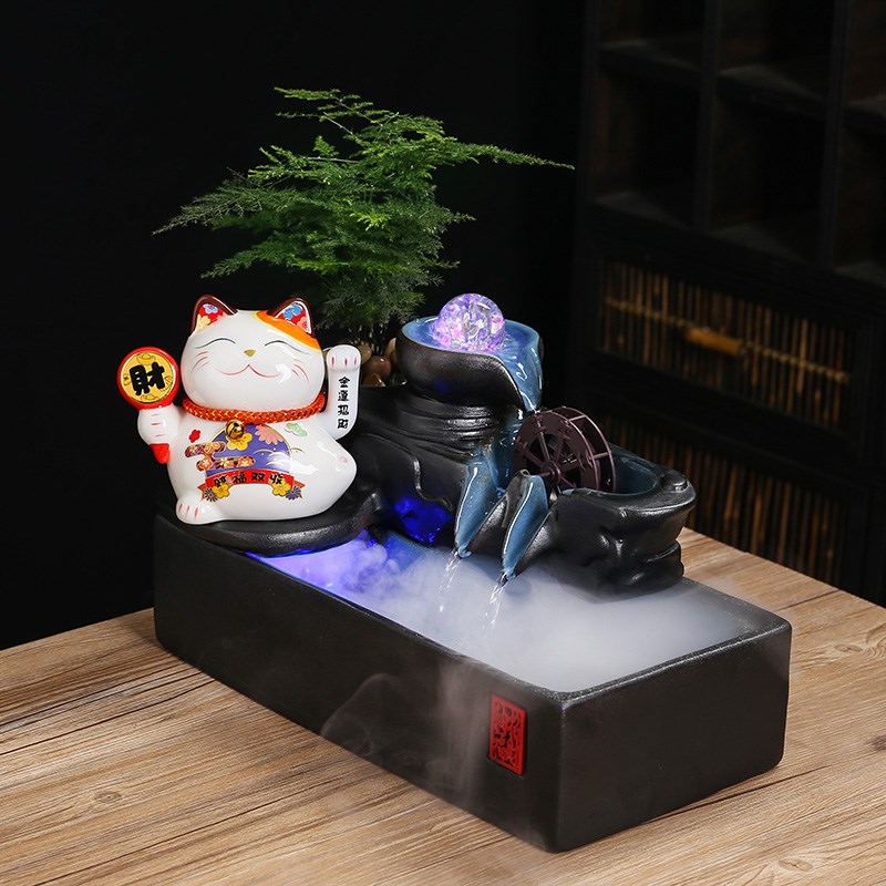 发财招财猫流水生财循环水店铺前台收G银台风水球装饰摆件开业礼