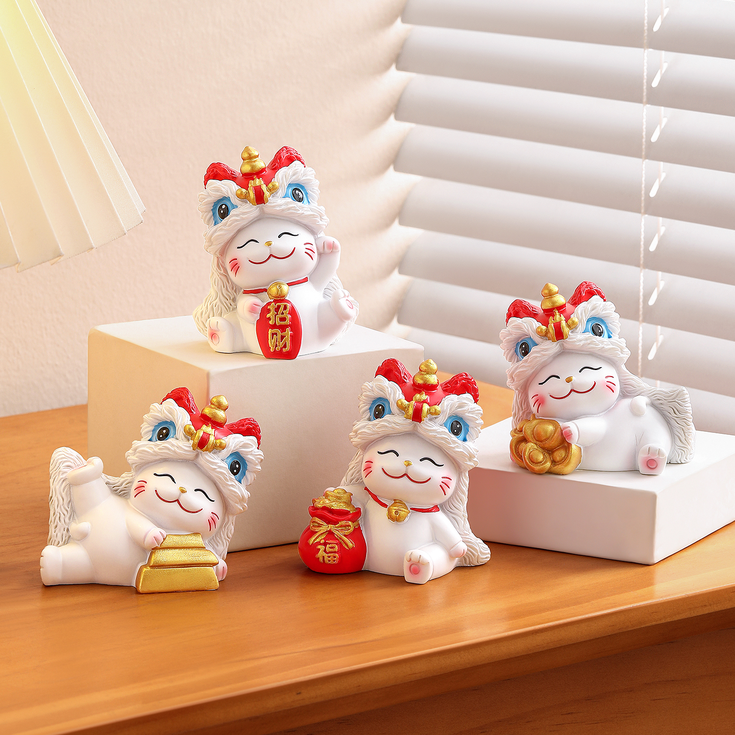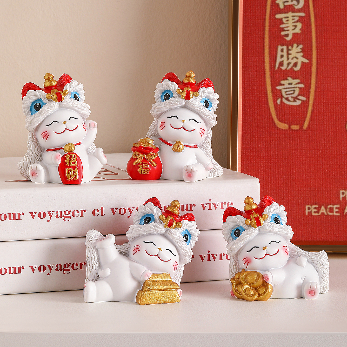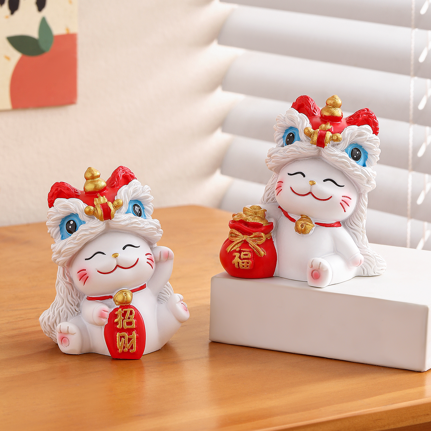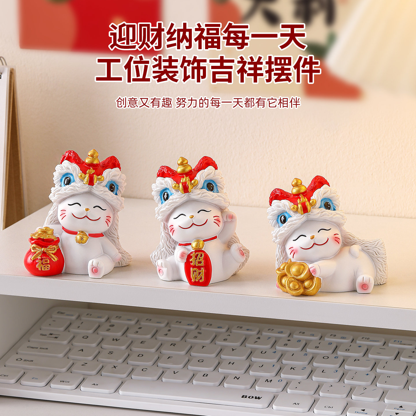 国潮醒狮招财猫小摆件玄关桌面工位手办公仔解压神器装饰品送礼物