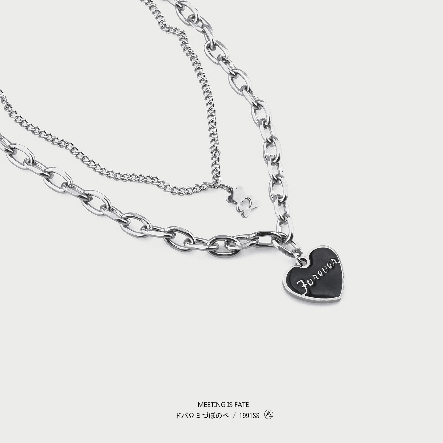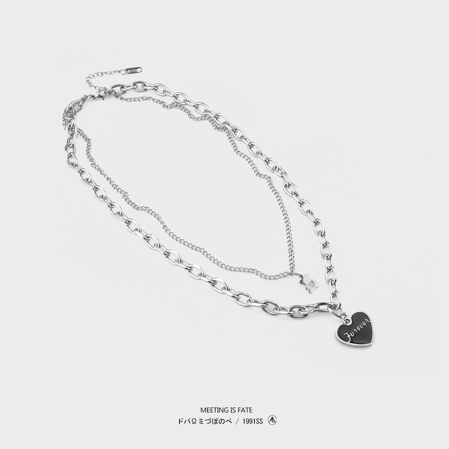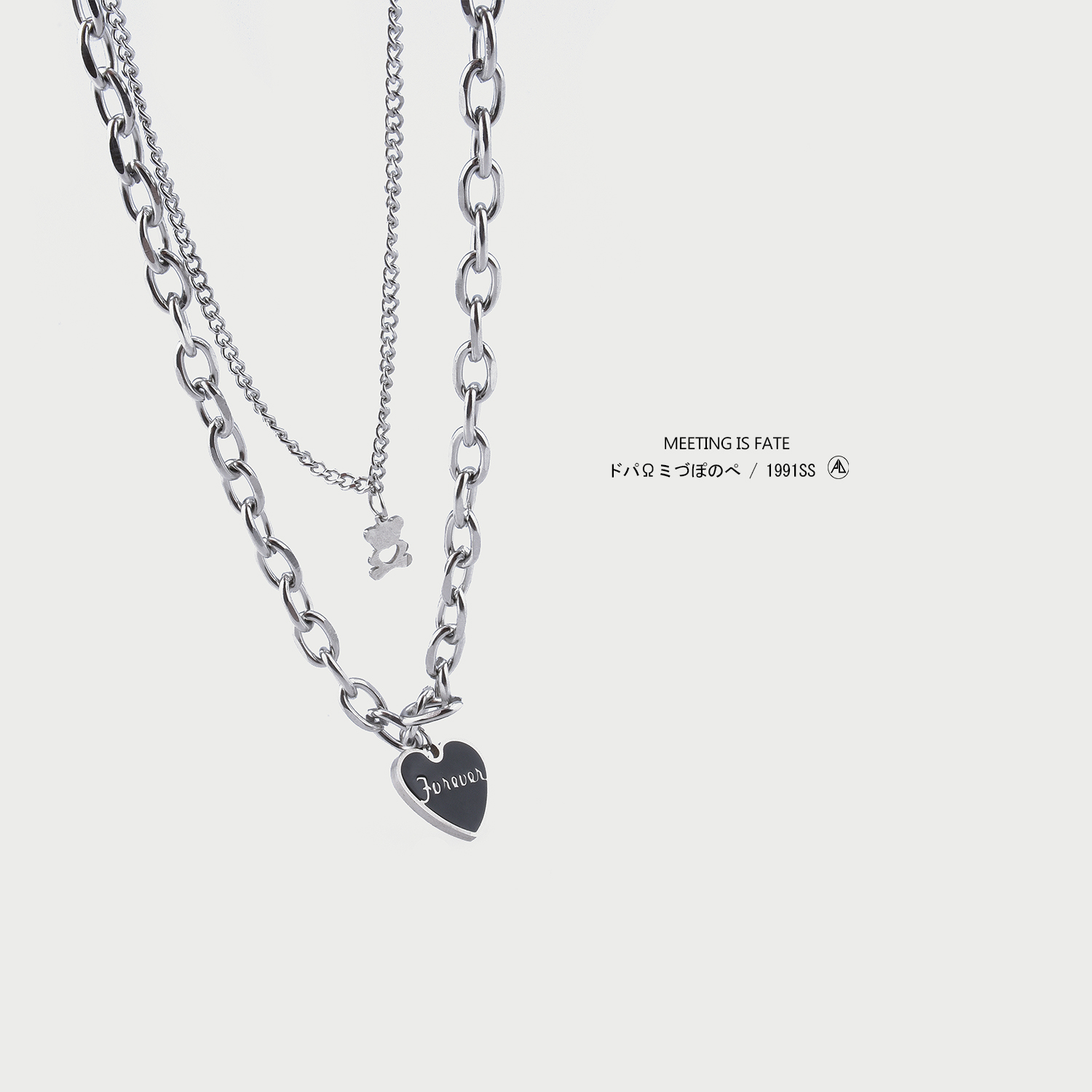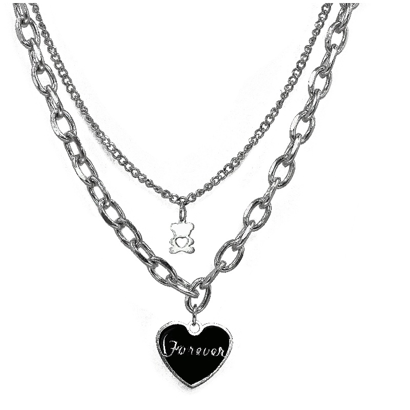 PDSTYLE 冷淡风funeven黑色桃心字母双层吊坠小熊项链女ins锁骨链