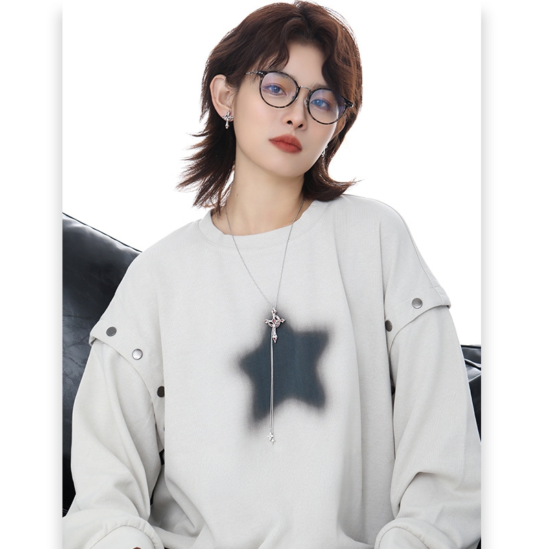 原创小众独特个性血月十字架项链女抽拉式甜酷设计感锁骨链