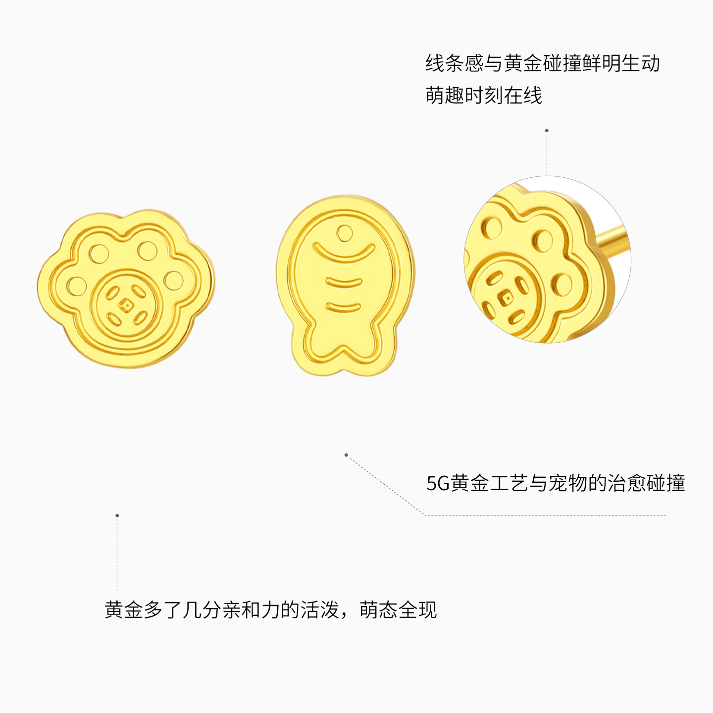 潮宏基宠物联萌足金耳钉黄金耳饰小鱼小猫生日礼物送女友 计价