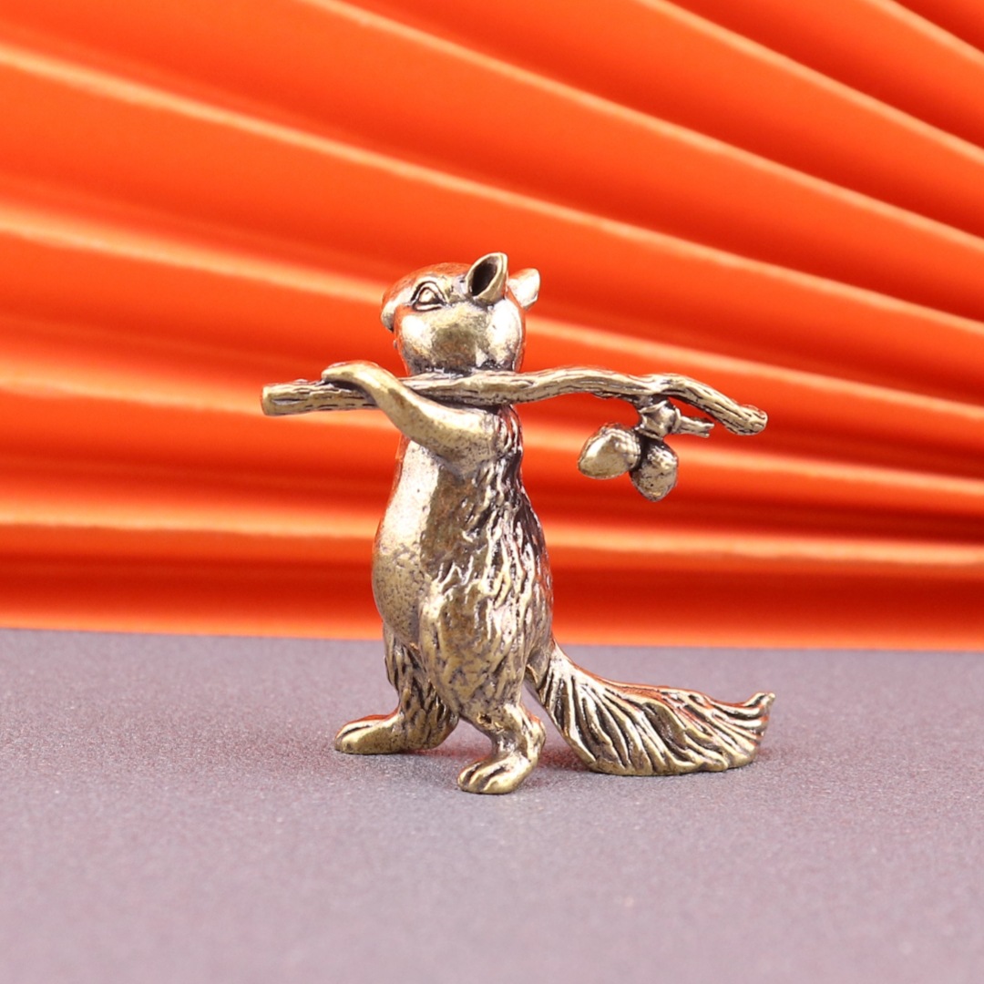 实心黄铜办公桌面装饰摆件抗棒松鼠古铜茶宠饰品工艺品礼物手把件