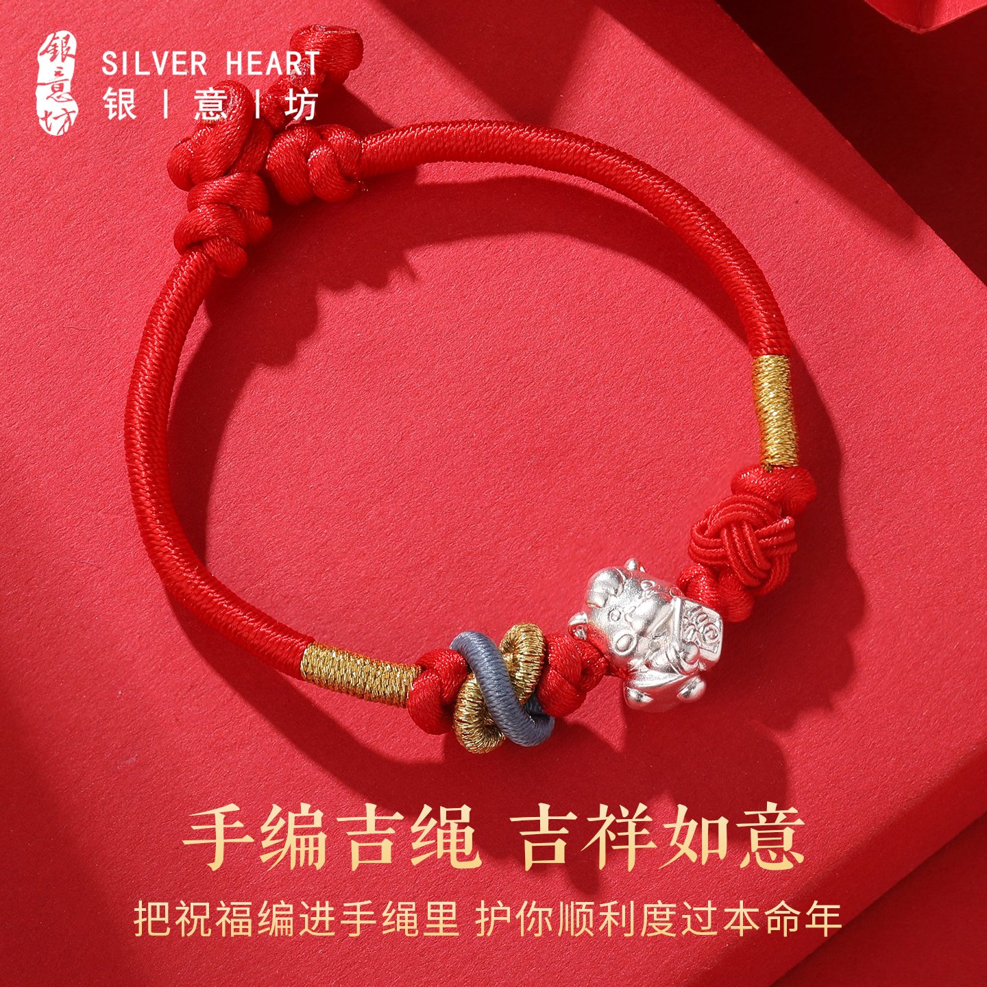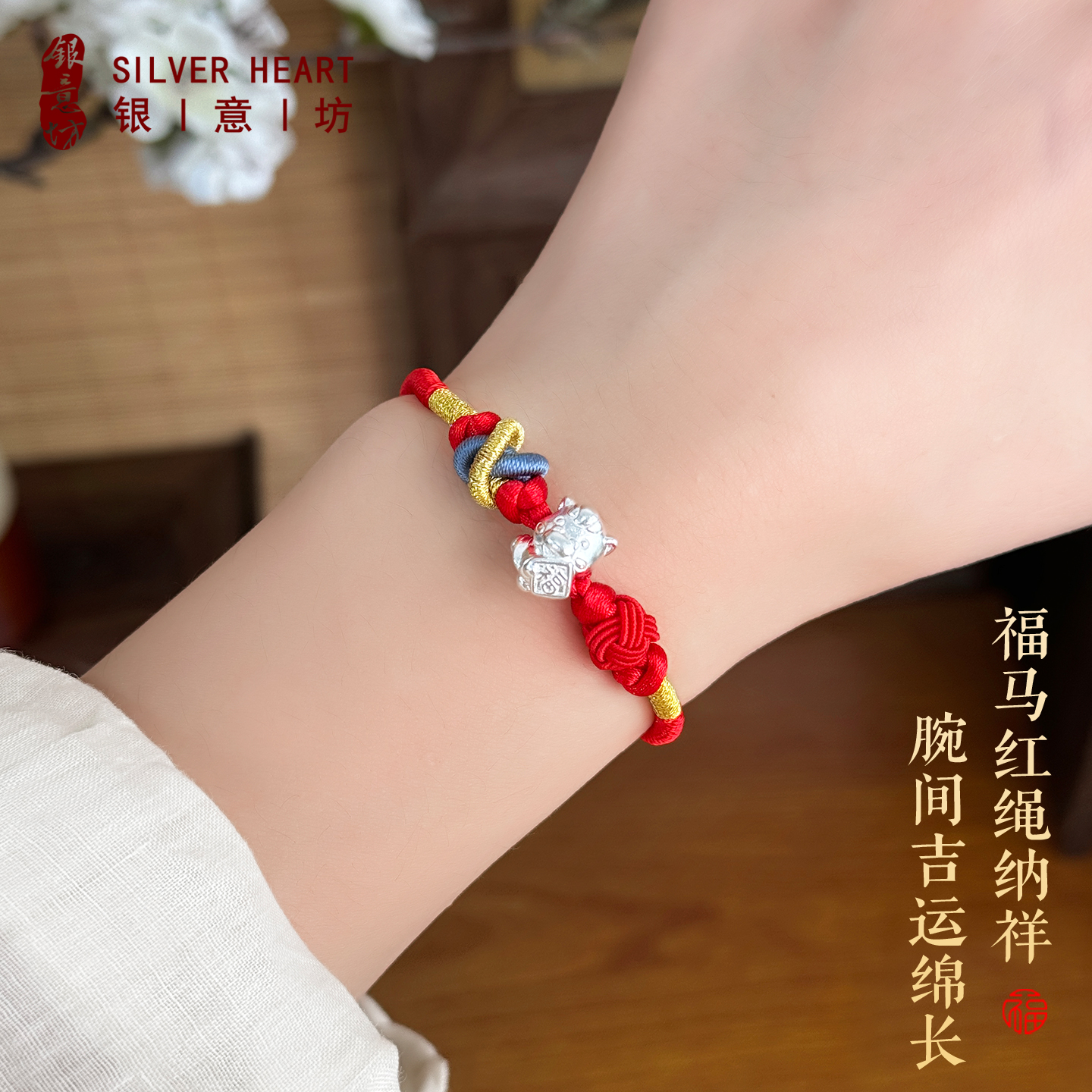2026马年本命年红绳好运手链女生轻奢小众精致手工编织红手绳纯银