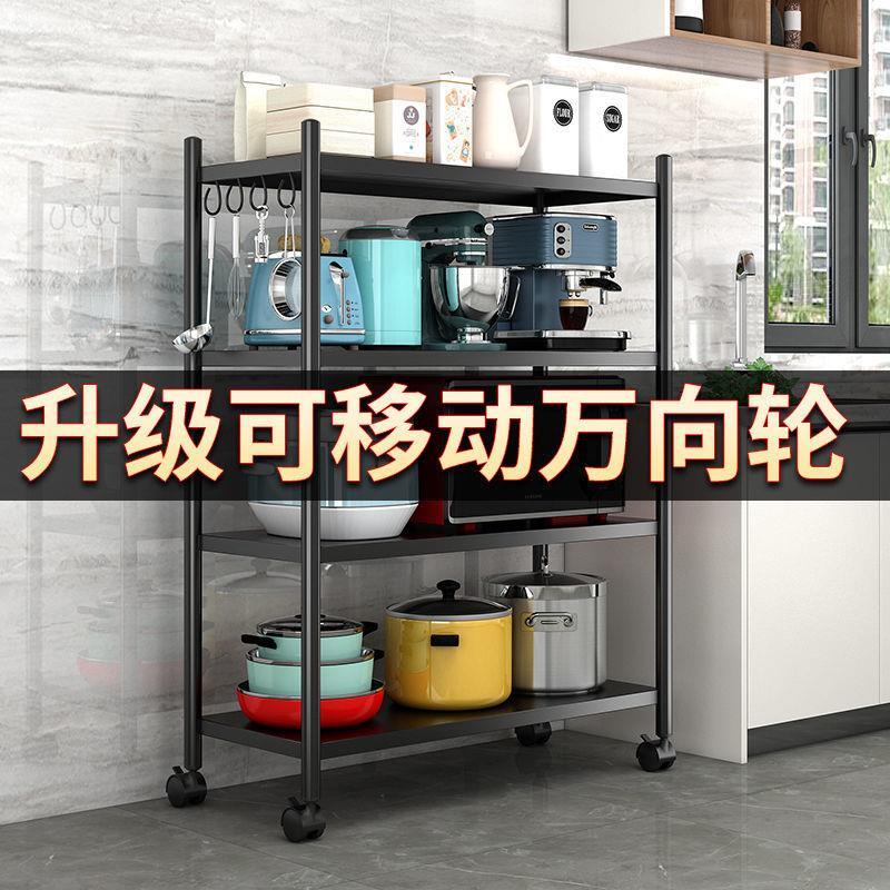 厨房置物架落地多层微波炉放锅多功能储物收纳架子万向轮分层货架
