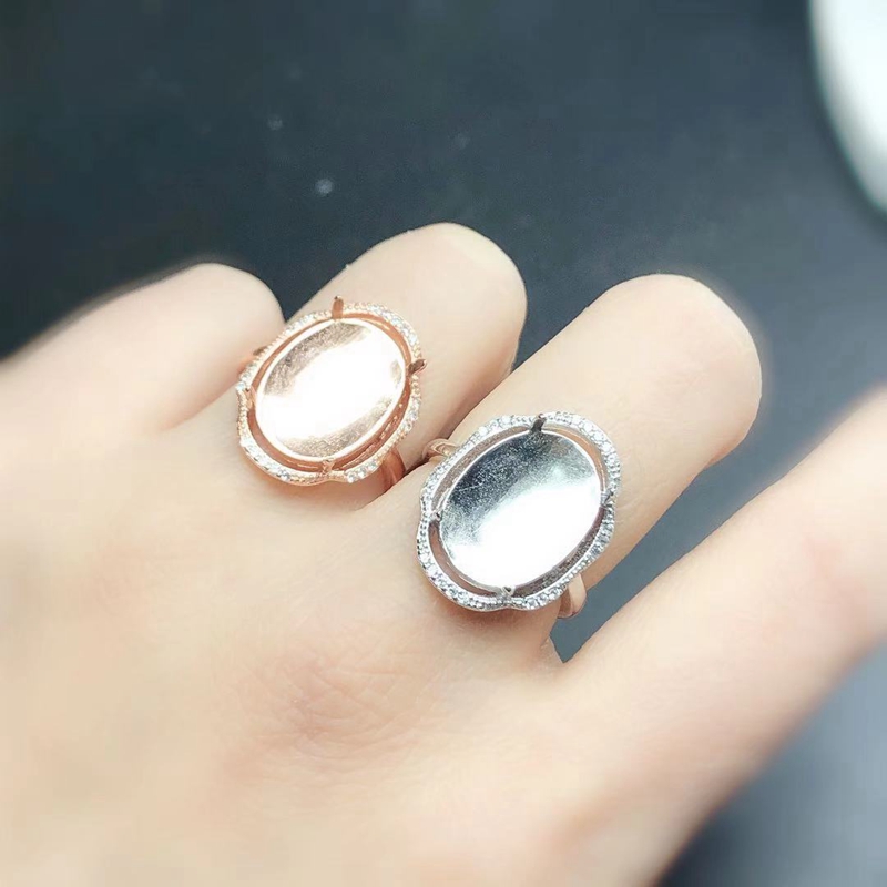 S925银女款 封底戒指空托 尺寸11*15 mm可代镶嵌蜜蜡琥珀 南红等