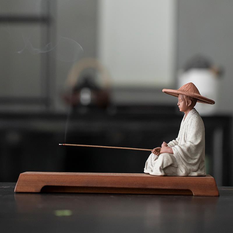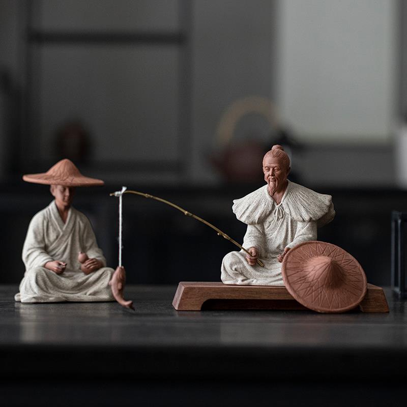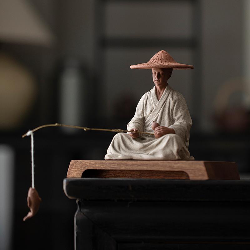 久造中式禅意姜太公钓鱼摆件创意陶瓷人物假山造景卧室书房摆设品
