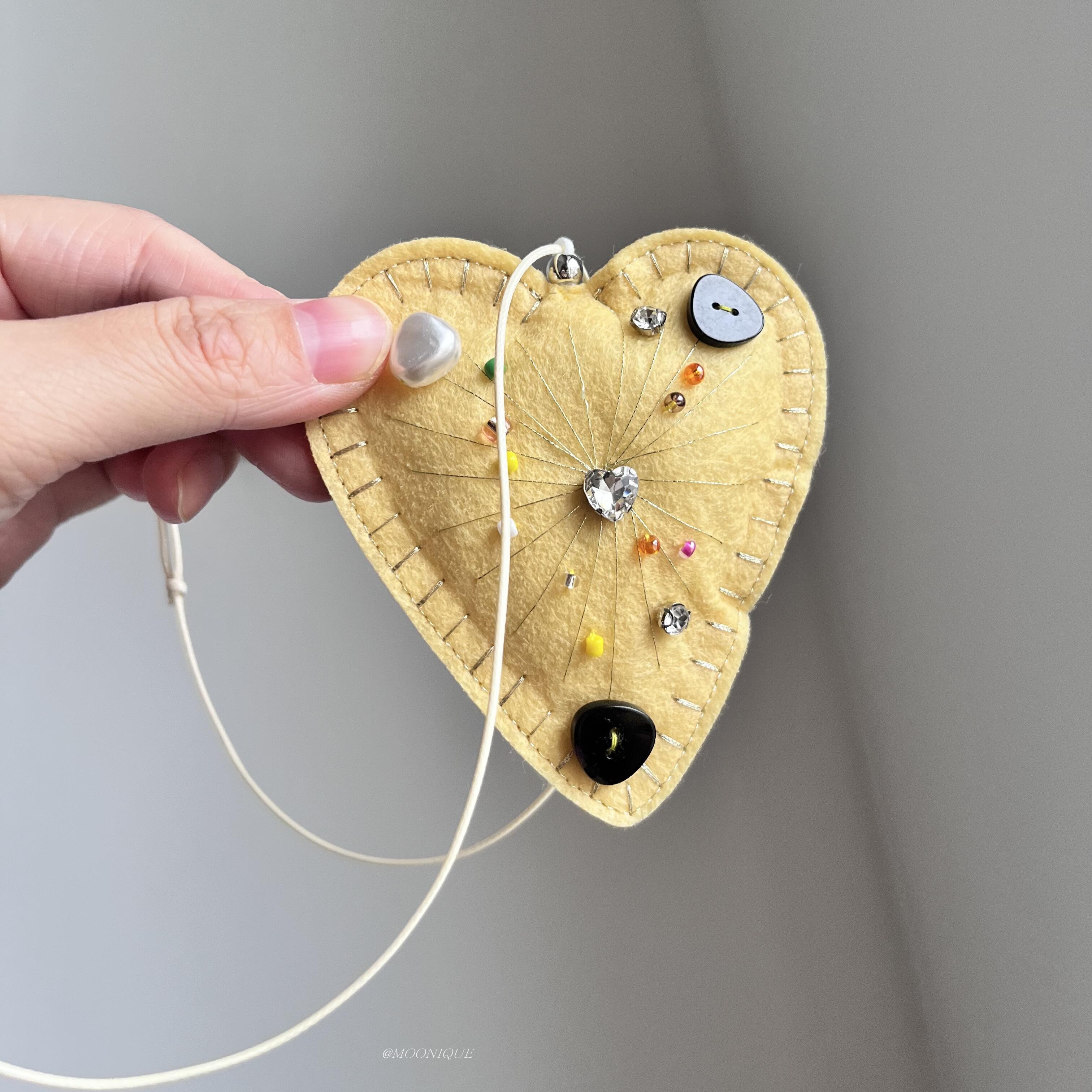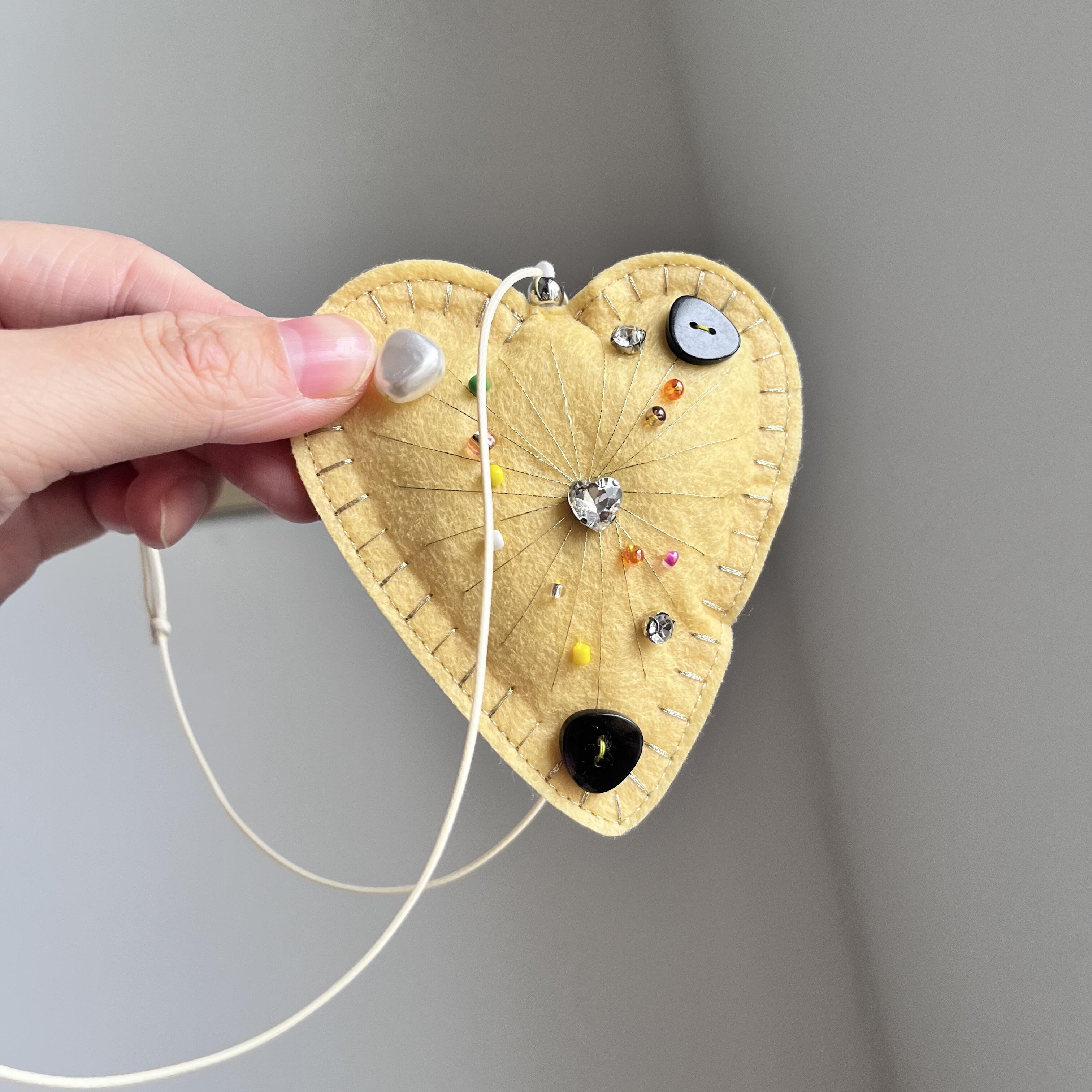 黄色毛毡碎钻花边爱心吊坠项链女甜酷辣妹风个性长款毛衣链高级感