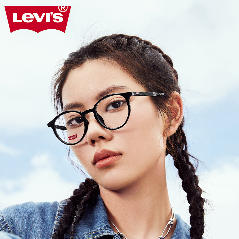 levis李维斯眼镜架复古圆脸框女士配近视黑色防蓝光近视配镜 7142