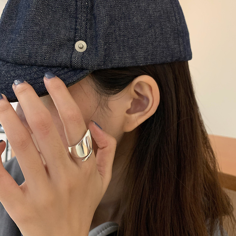 韩版复古个性几何光面戒指女925镀银ins潮小众学生简约食指开口戒