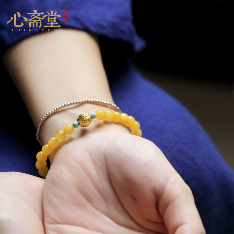 心斋堂【如是】波罗的海天然琥珀蜜蜡佛珠手串足金999饰品民族风