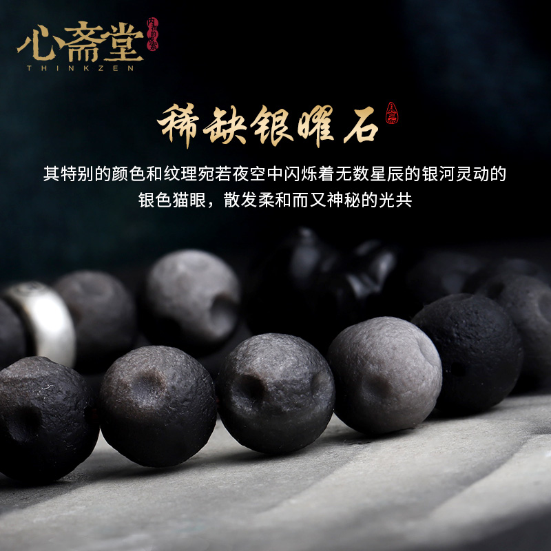 心斋堂【守护】黑曜石手串银曜石陨石情人节礼物本命年情侣手链