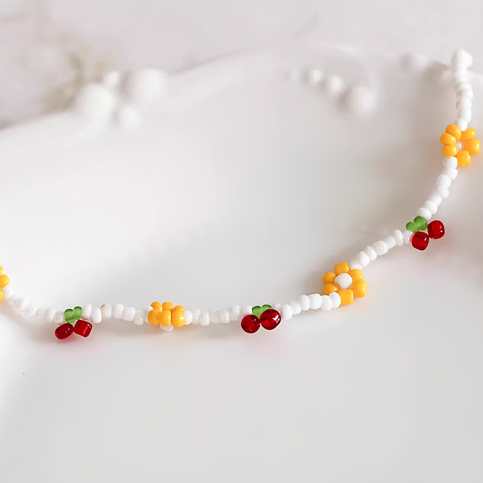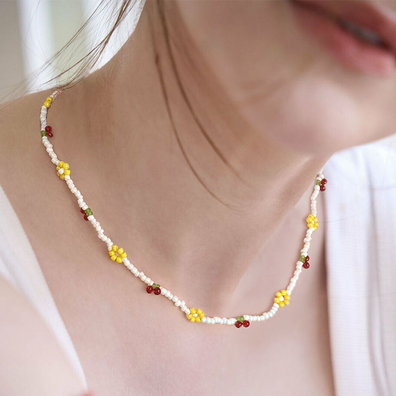 OSEWAYA项链日系彩色串珠珍珠锁骨链小众少女清新夏日2025年配饰