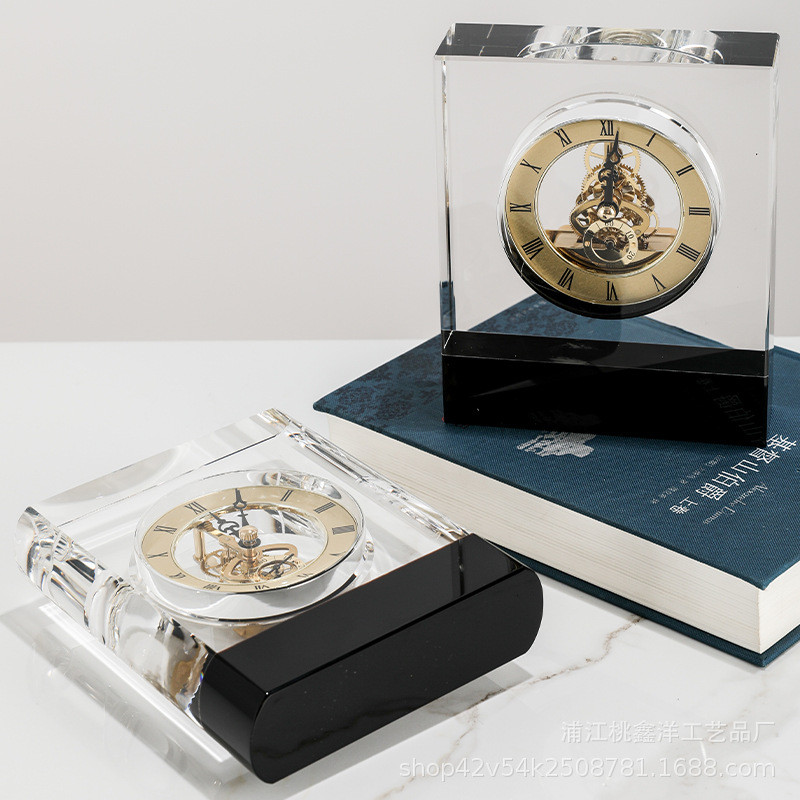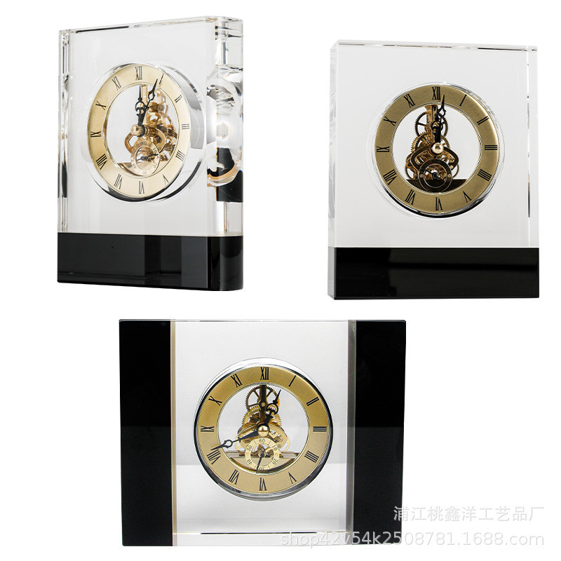 热销轻奢复古摆件多款钟表黑边别墅民宿客厅酒店玄关桌面水晶工艺