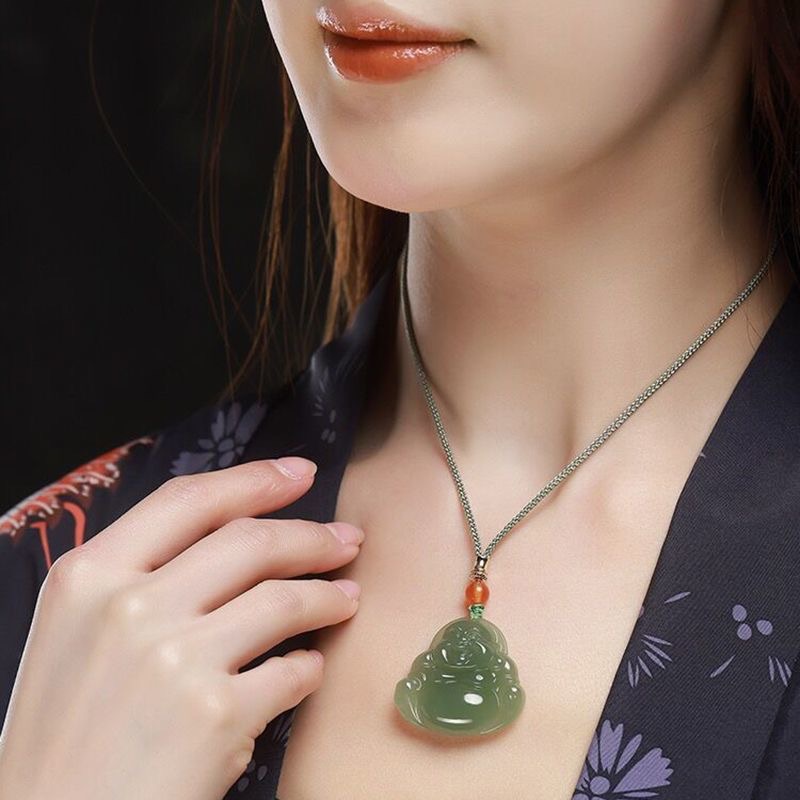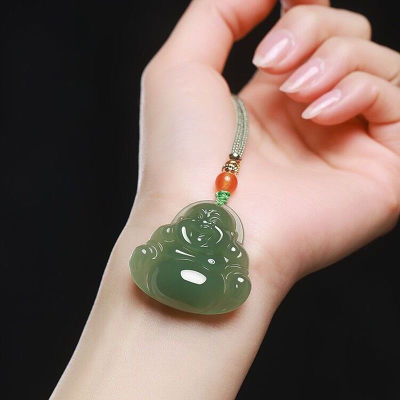 和田晴水色弥勒佛吊坠笑佛女项链佛公坠大肚笑佛弥勒佛毛衣链百搭