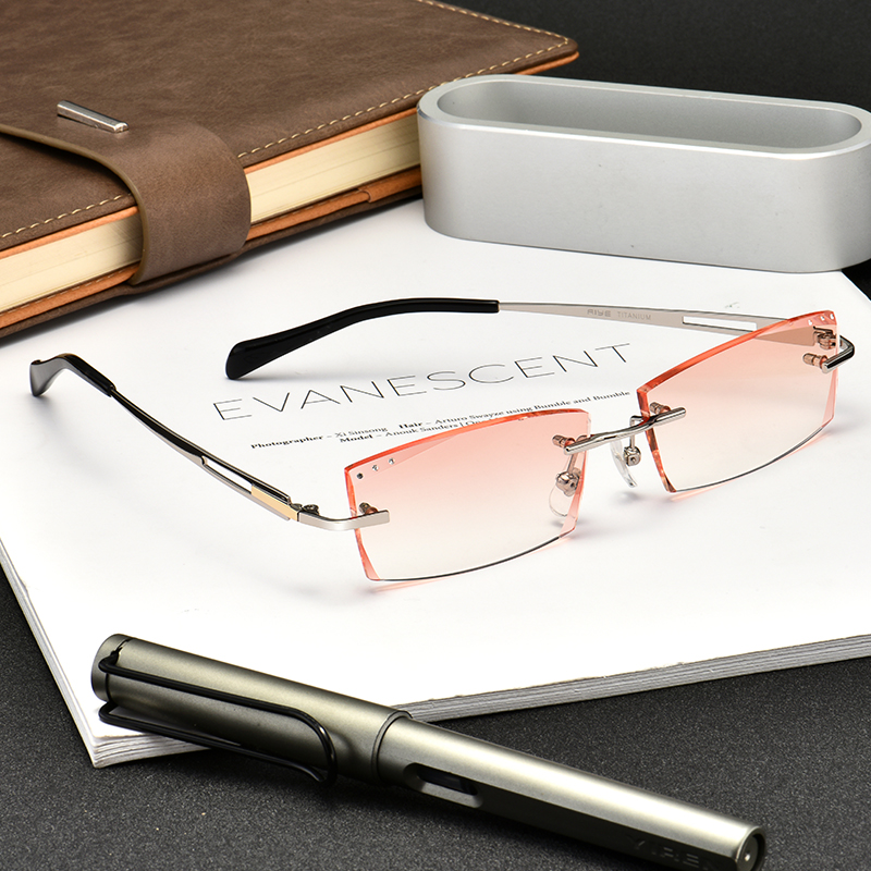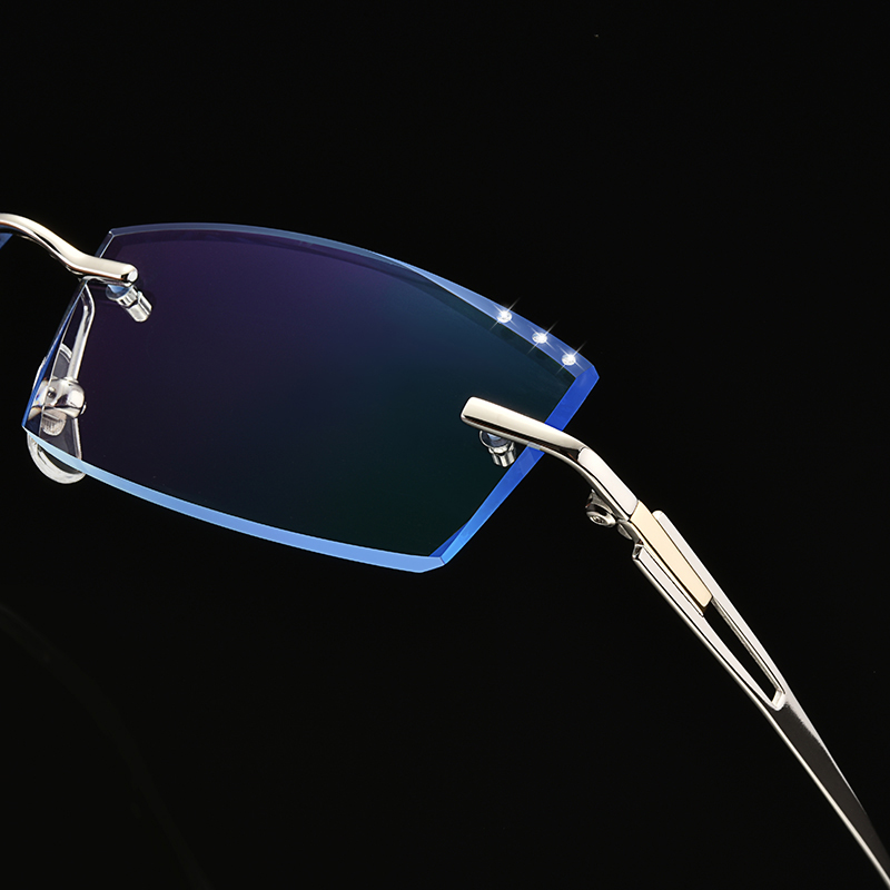 纯钛近视眼镜男成品 无框眼镜架变色钻石切边眼睛男防蓝光女切边